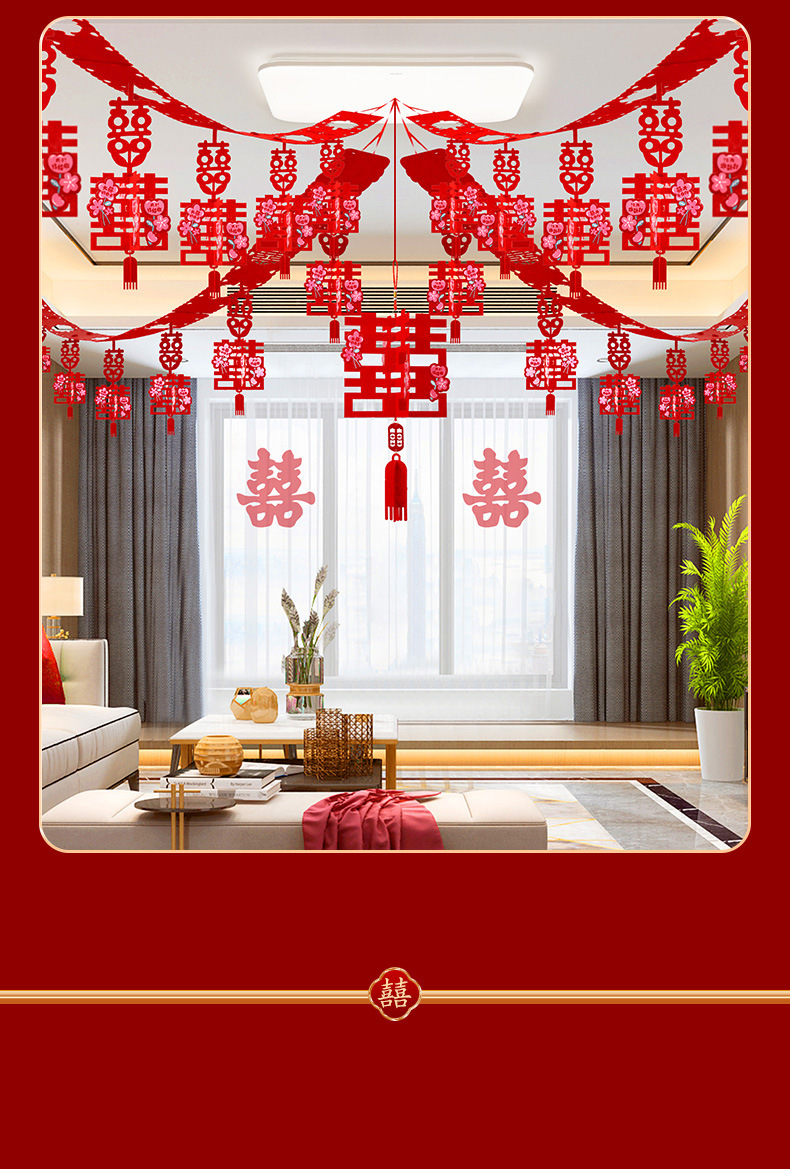 2025 nueva sala de estar decoración de la sala de bodas techo de boda techo decoración de flores de dibujo boda casa rural nuevo conjunto