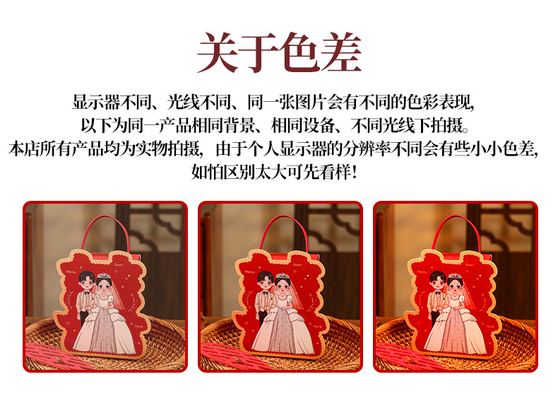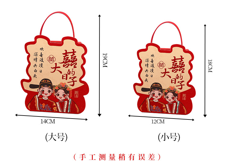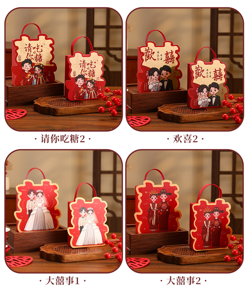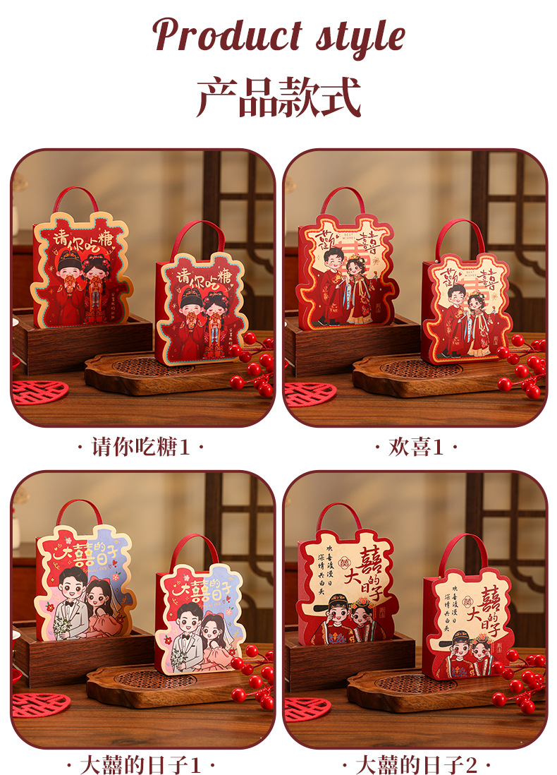 | Colores | Caja cuadrada "B51",Caja cuadrada "Huanxi",Caja cuadrada "sombrero oficial",Caja cuadrada "Vestido de novia",Caja cuadrada "Flores occidentales",Caja cuadrada "Por favor come dulces" |
