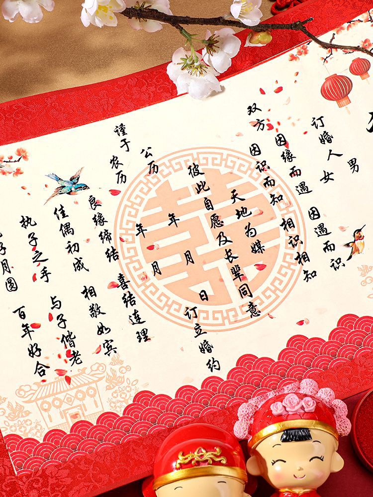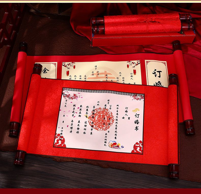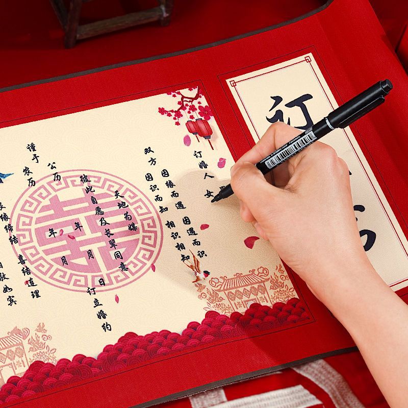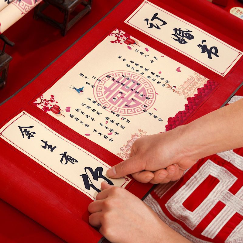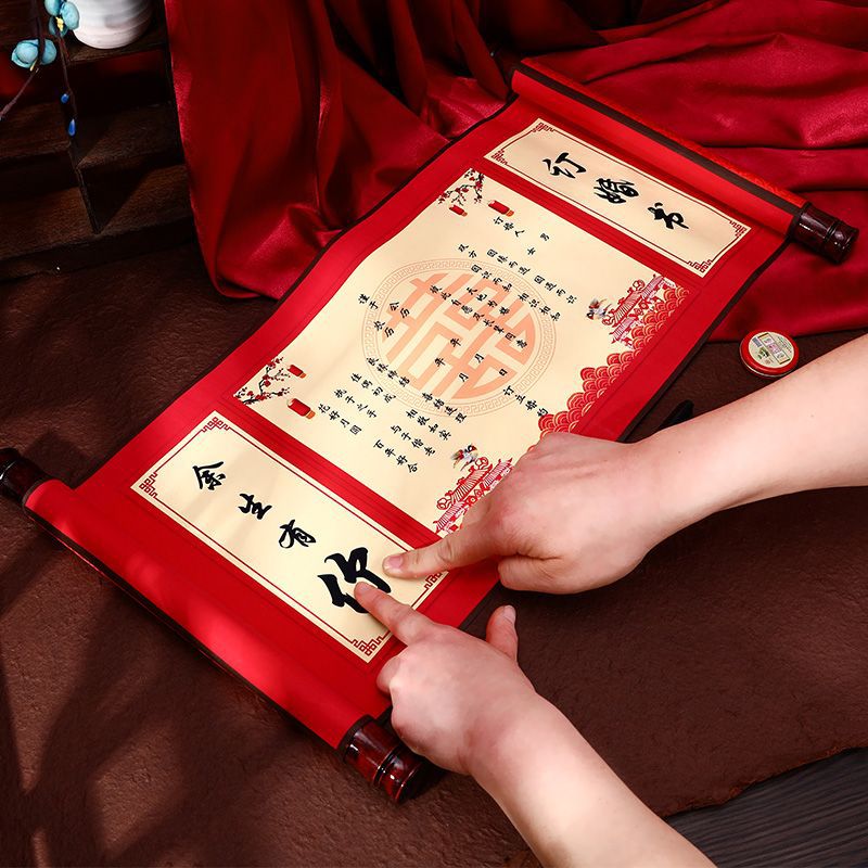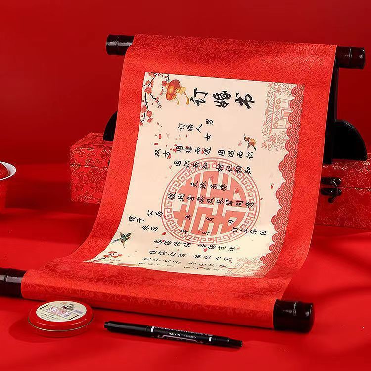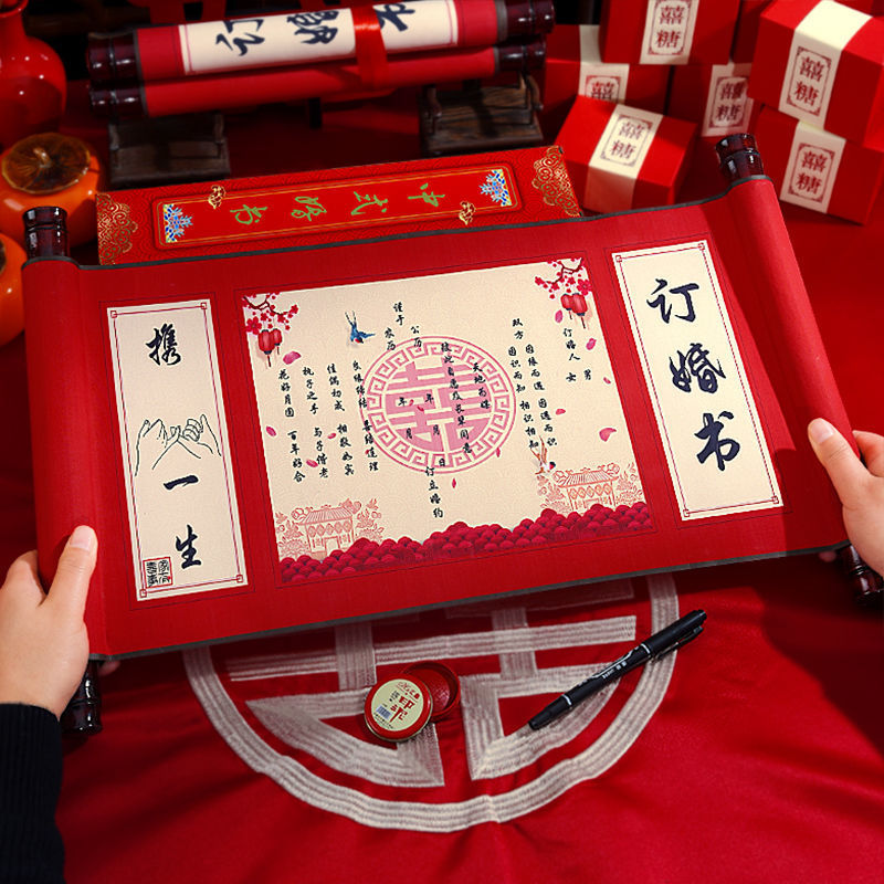 Boda de boda rollo carta de compromiso carta de nombramiento de boda red letra escrita a mano para enviar el día sagrado rollo de decreto suministros de boda carta de boda