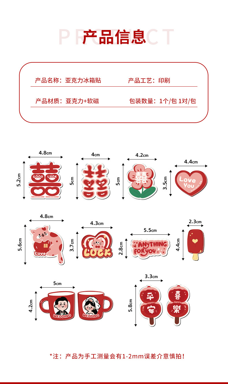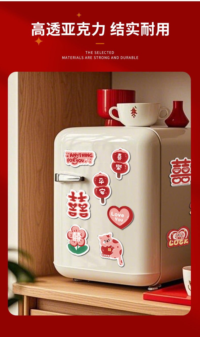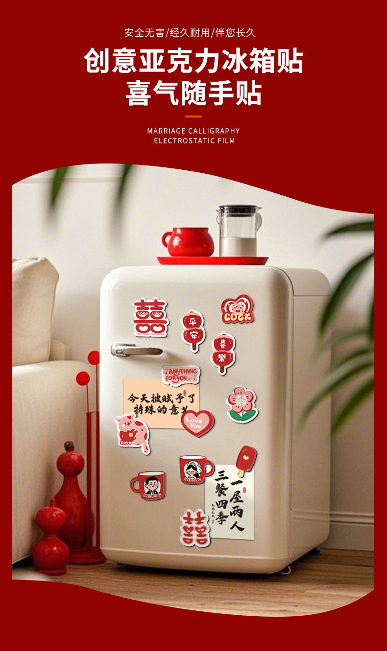 Pegatinas de nevera de succión magnética acrílica creativa, personajes de boda, decoración personalizada, pegatinas de succión magnética, suministros de decoración de la sala de bodas