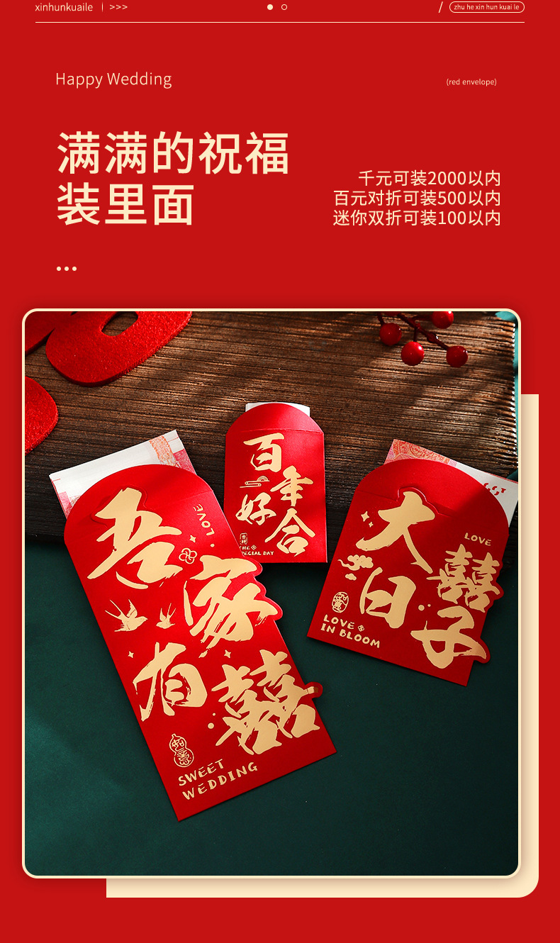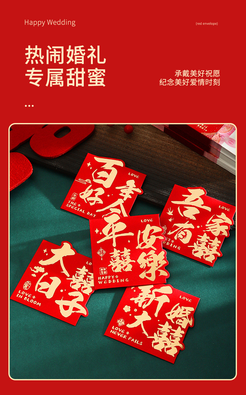 Bodas especiales sobre rojo al por mayor suministros de boda personalidad ZiLi es un sello de boda con un par de mini puerta bloqueada bolsa de sobre rojo