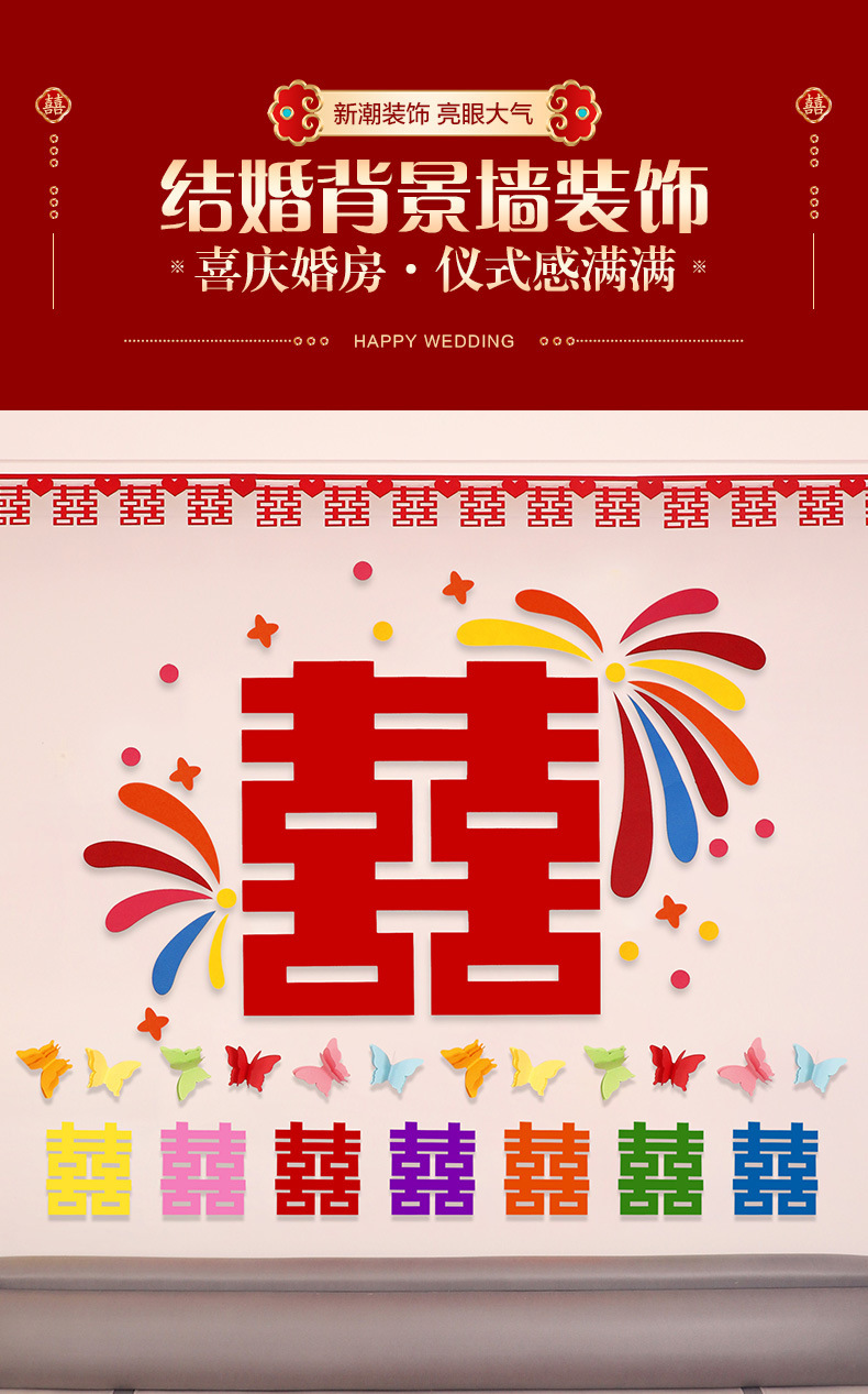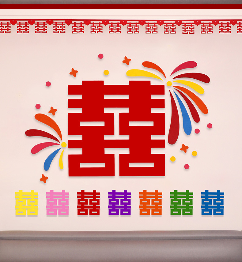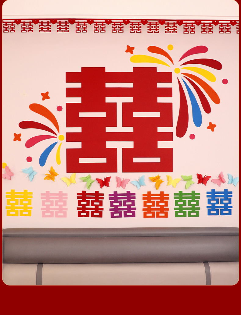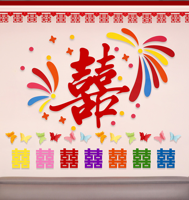 Suministros de boda de dopamina, decoración de la cabecera de la cama de la flor, sala de estar, fondo de palabras felices, decoración de la sala de bodas