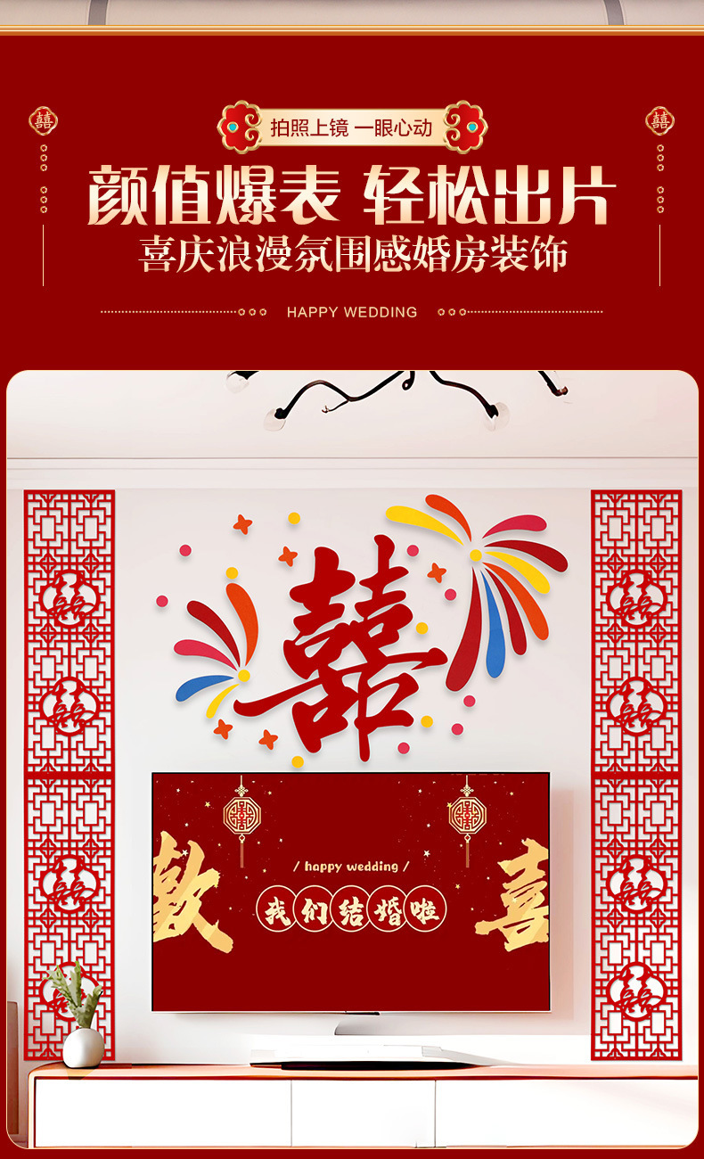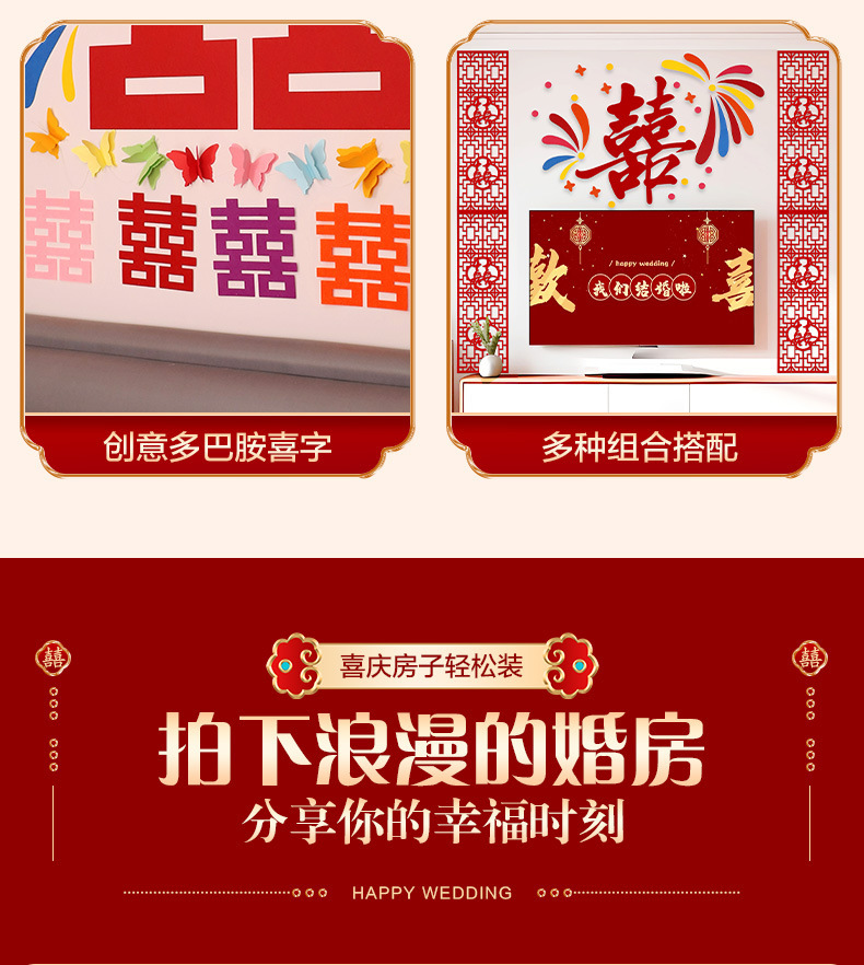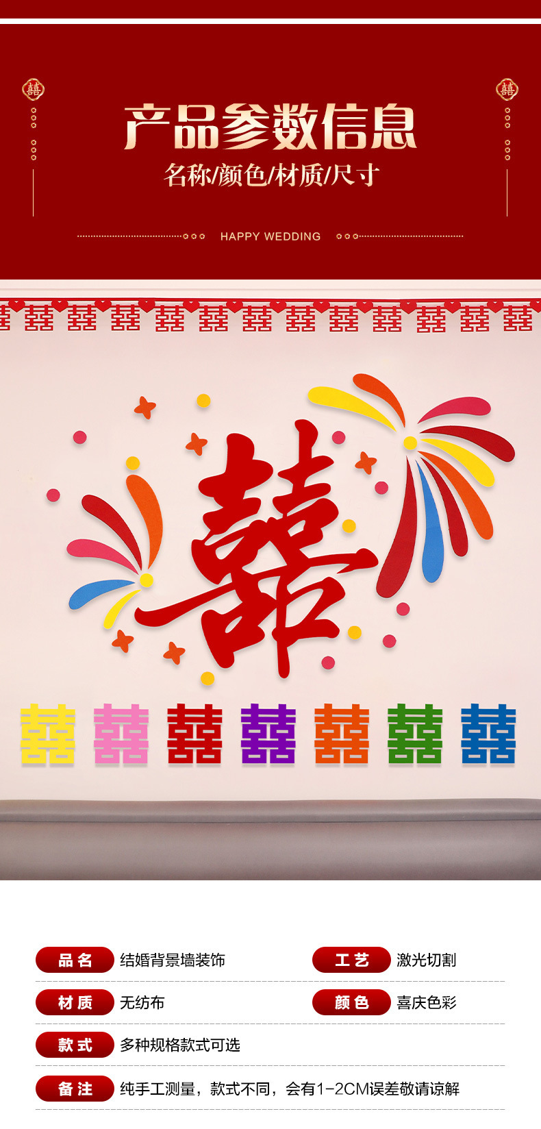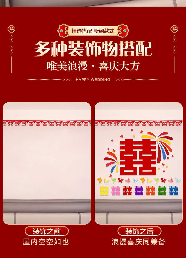 Suministros de boda de dopamina, decoración de la cabecera de la cama de la flor, sala de estar, fondo de palabras felices, decoración de la sala de bodas