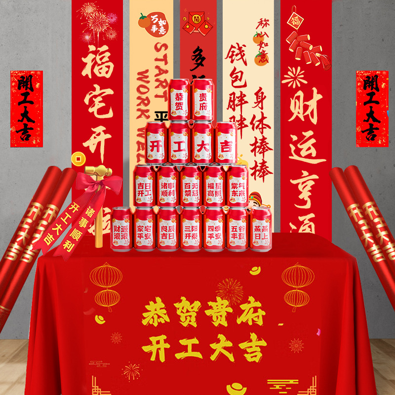 Inicio de la ceremonia de buena suerte, juego completo de decoración, suministros para la ceremonia de la empresa, mantel de fondo de la casa nueva, mantel de pancarta, saludo de pareado