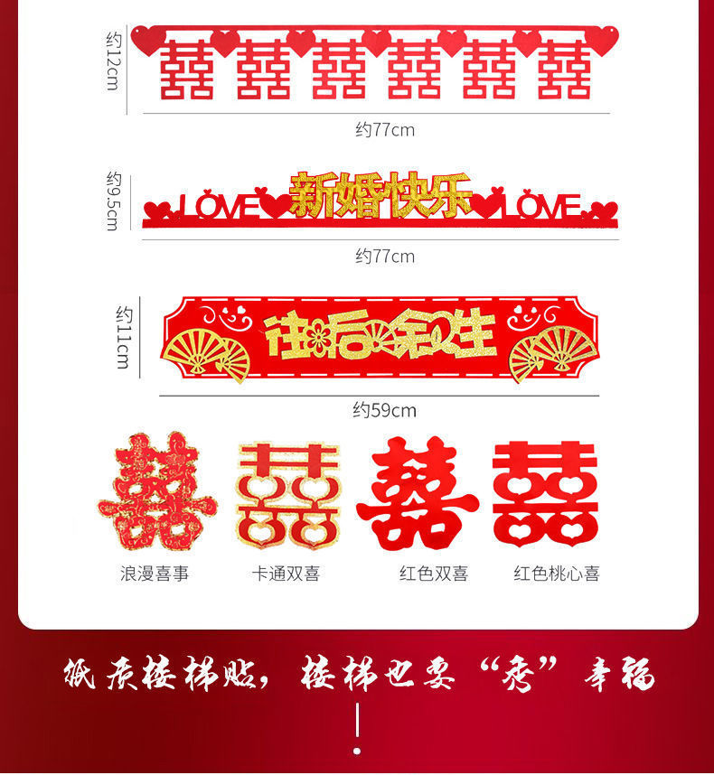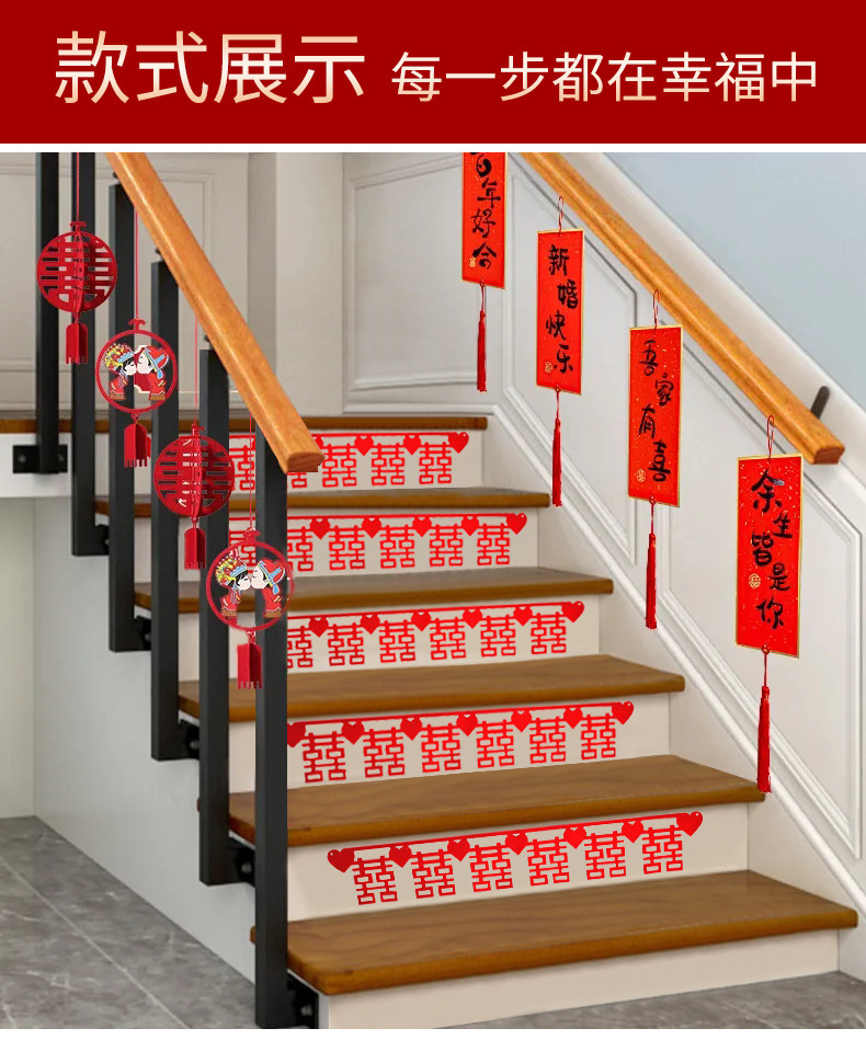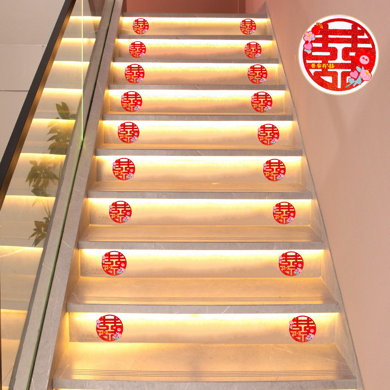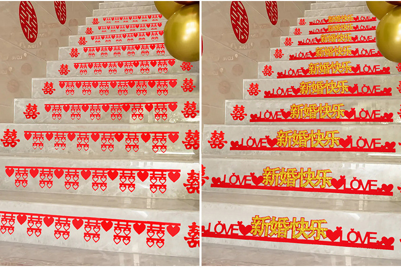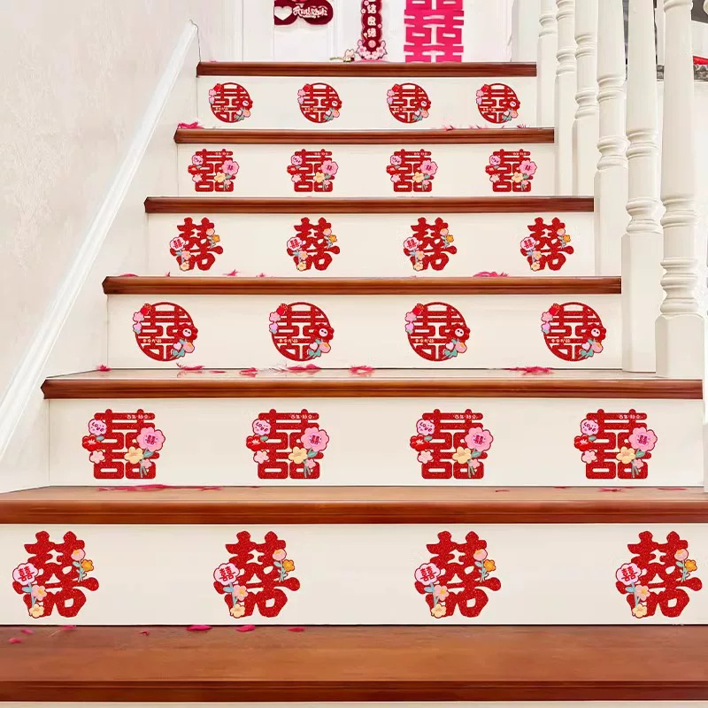 Boda no tejida decoración de escaleras sala de bodas pegatinas de pared tirando de flores pegatinas de carácter feliz suministros de boda nueva decoración de la escena de la casa