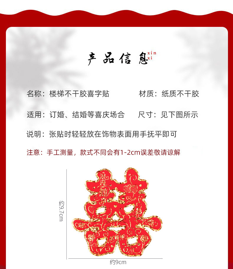| Especificaciones | 50 flores Zhengxi,50 flores y hierba,50 flores,Adhesivo rojo doble felicidad 90 hojas,Adhesivo romántico y feliz 90 hojas,Zhengxi 10 rojo feliz 90,Tao Xinxi 10 rojo feliz 90,Zhengxixilianxi bronceado palabra feliz,Taoxin Xilianxi bronceado palabra feliz,10 corazones de melocotón,Zhengxi 10,Juego de bandera de tirón rojo vino 4,El día de la alegría del vino tinto,El día de la alegría del vino tinto, el juego de flores y banderas 3,El día de la alegría del vino tinto, el juego de flores y banderas 5,Juego de bandera de la flor de la confesión de vino tinto 6,Juego de guirnalles del día de la alegría del vino tinto 2,Colgante Fangxi de confesión de vino tinto,Colgante rojo vino,Conjunto de guirapata de doble felicidad,Juego de flores de color rojo vino 3,Juego de bandera de tirón de flores de doble felicidad de vino rojo 1,Juego de bandera de la flor de la confesión de vino tinto 2 |