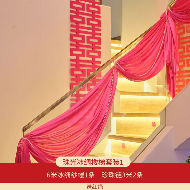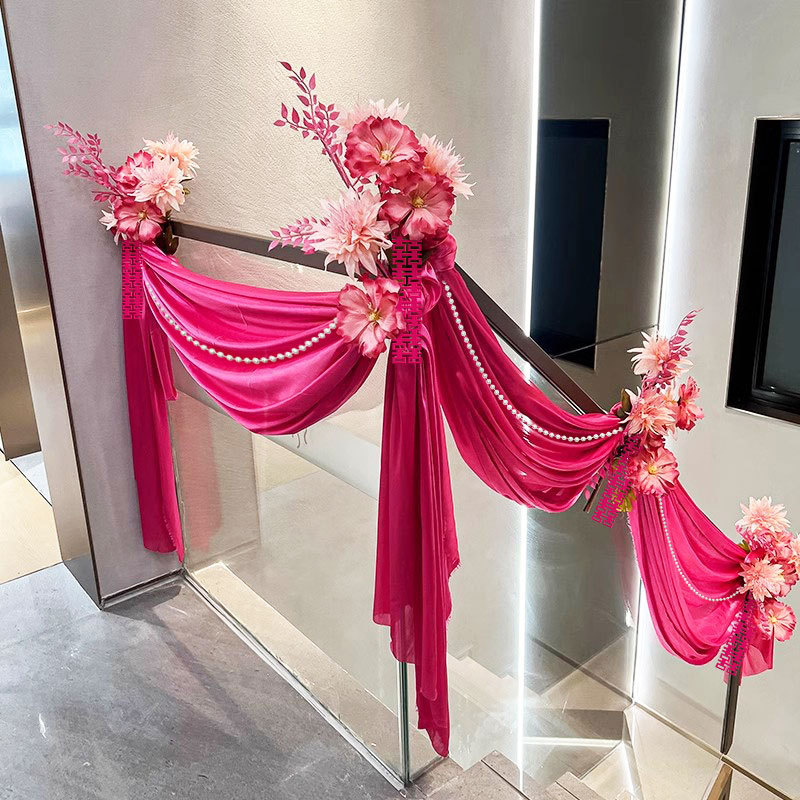 Decoración de la casa de bodas cortina cortina de fondo prop telón de techo cortina de techo hielo seda escalera pasamanos decoración