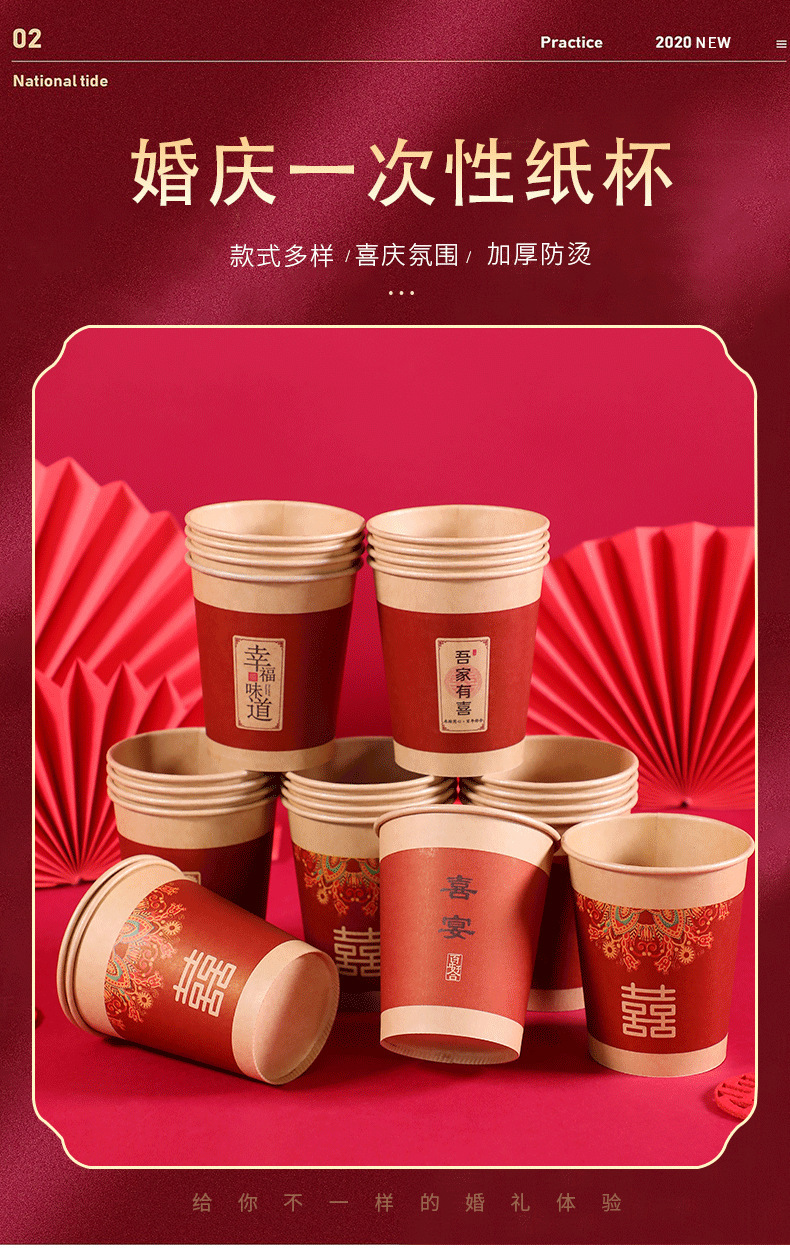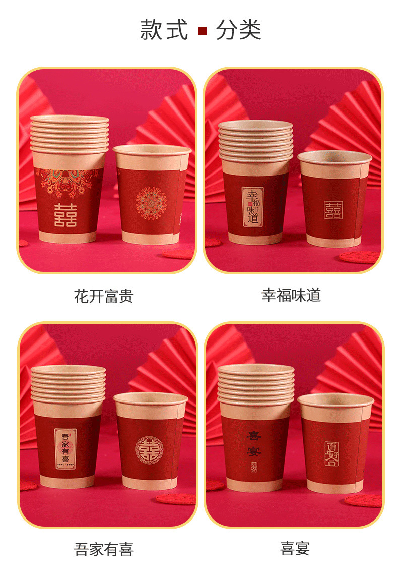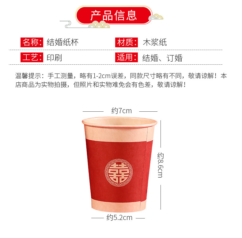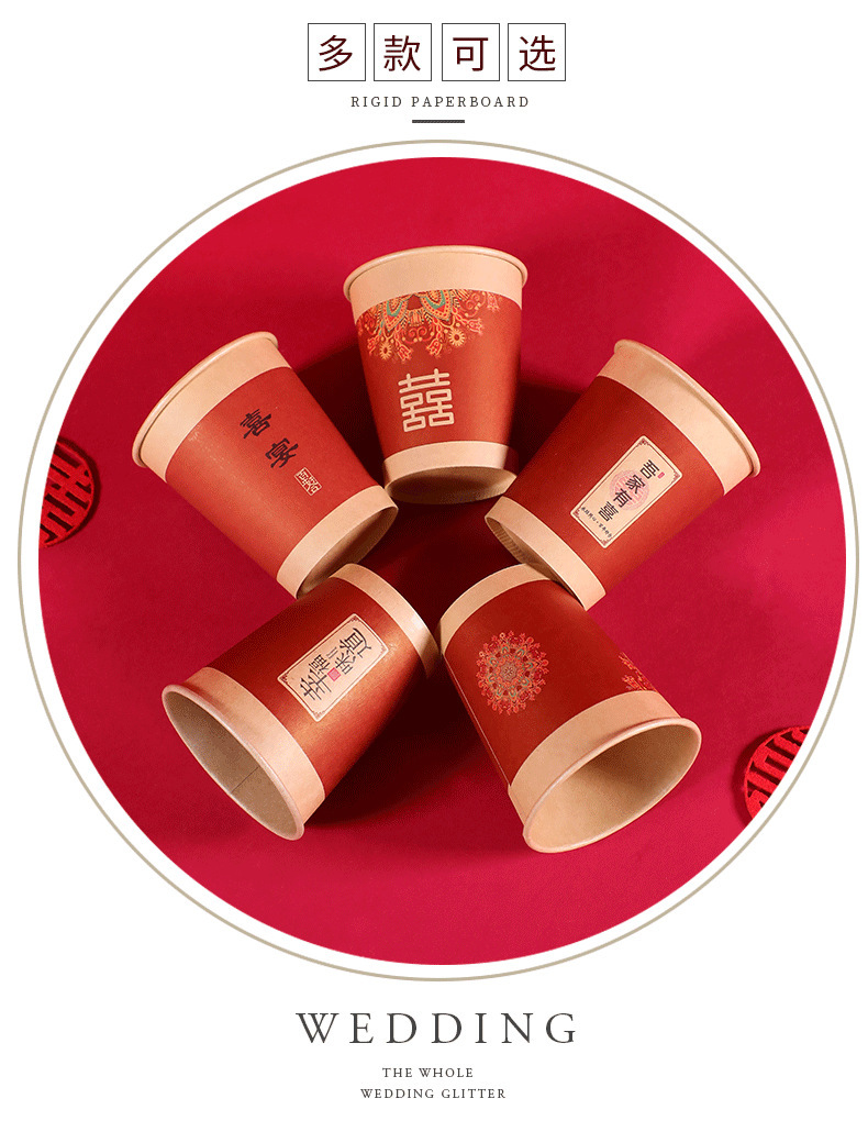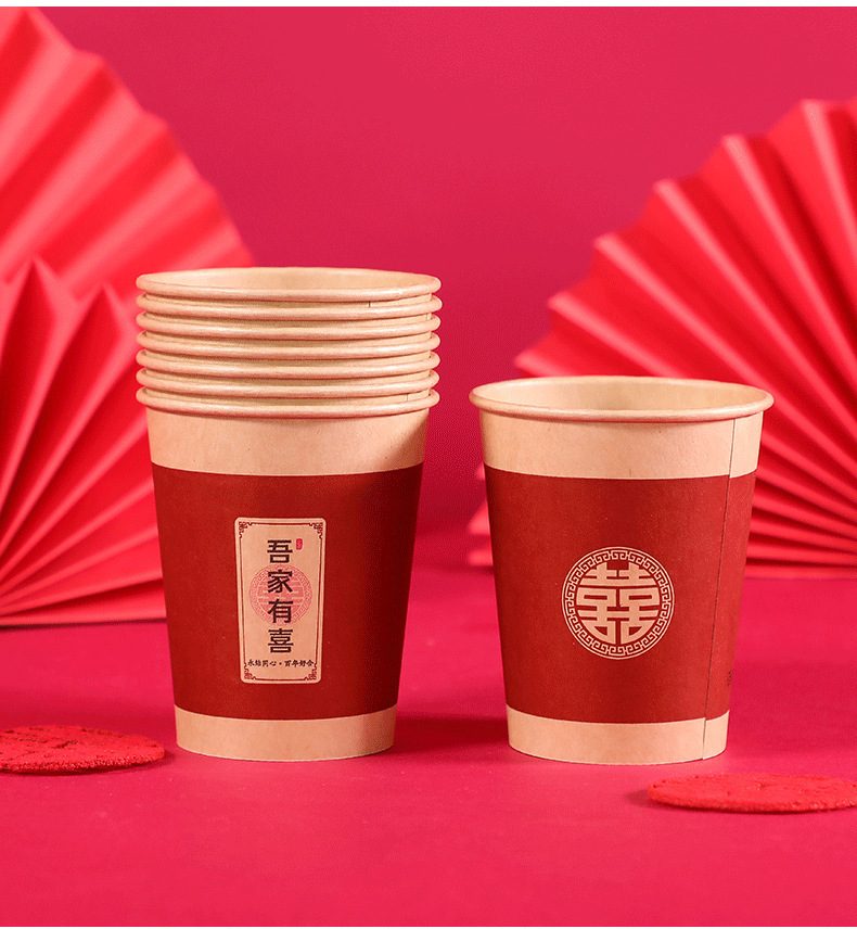 Tazas de papel desechables para la boda, vasos de papel para la boda, tazas de papel rojas, tazas de agua, tazas de brindis