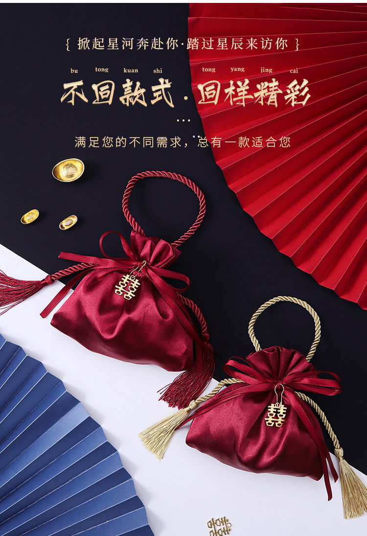 | Color | Modelo de boda de cobre con borlas rojas de vino, modelo de boda de cobre con borlas doradas, modelo de perla con borlas rojas de vino, modelo de perla con borlas doradas |