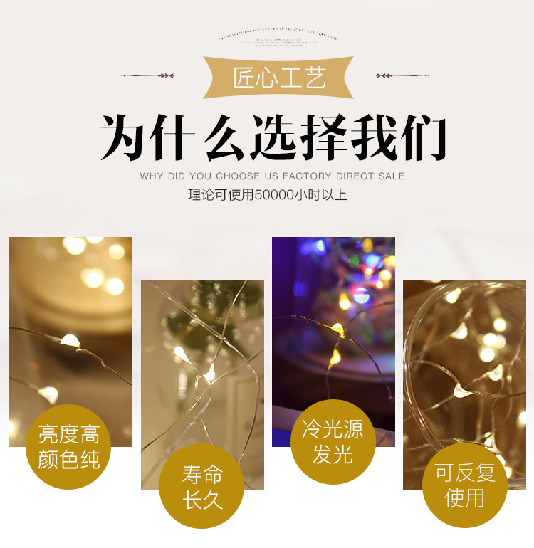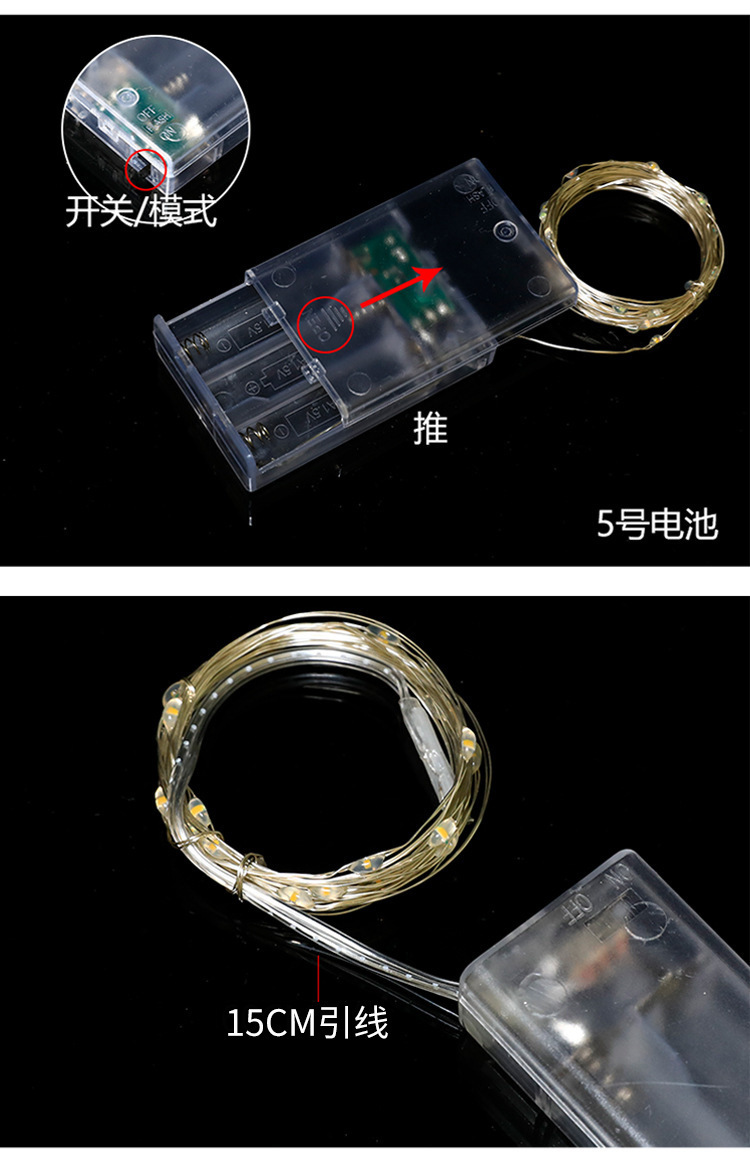Caja de baterías transfronterizas cable USB LED lámpara de alambre de cobre caja de regalo de decoración de torta de Navidad lámpara de alambre de cobre lámpara de color