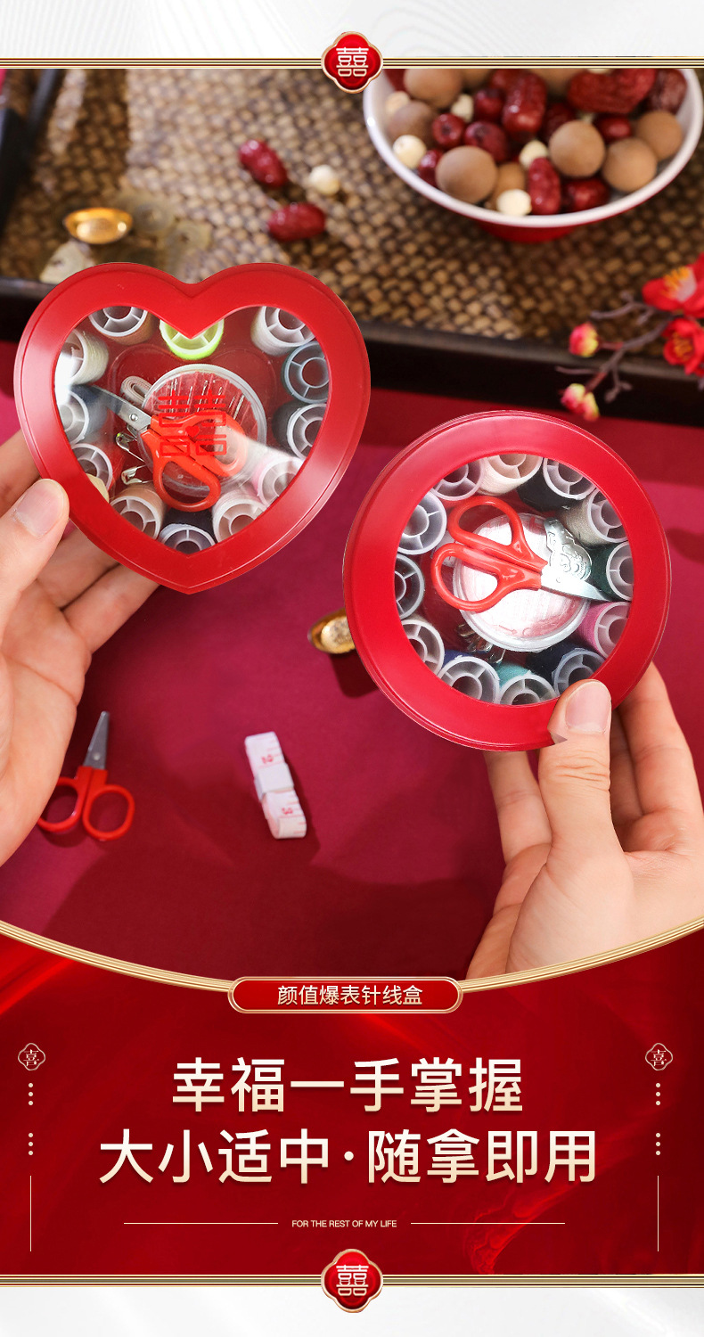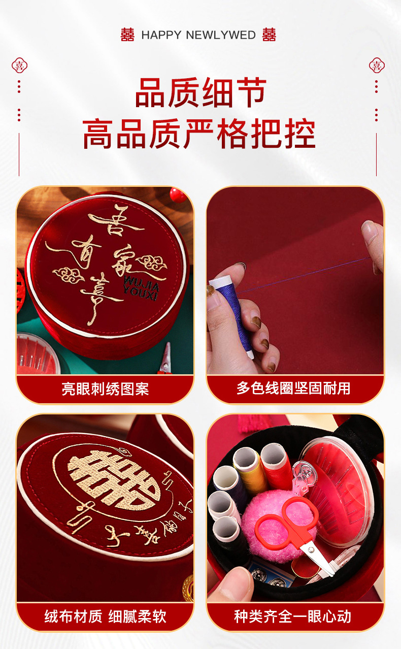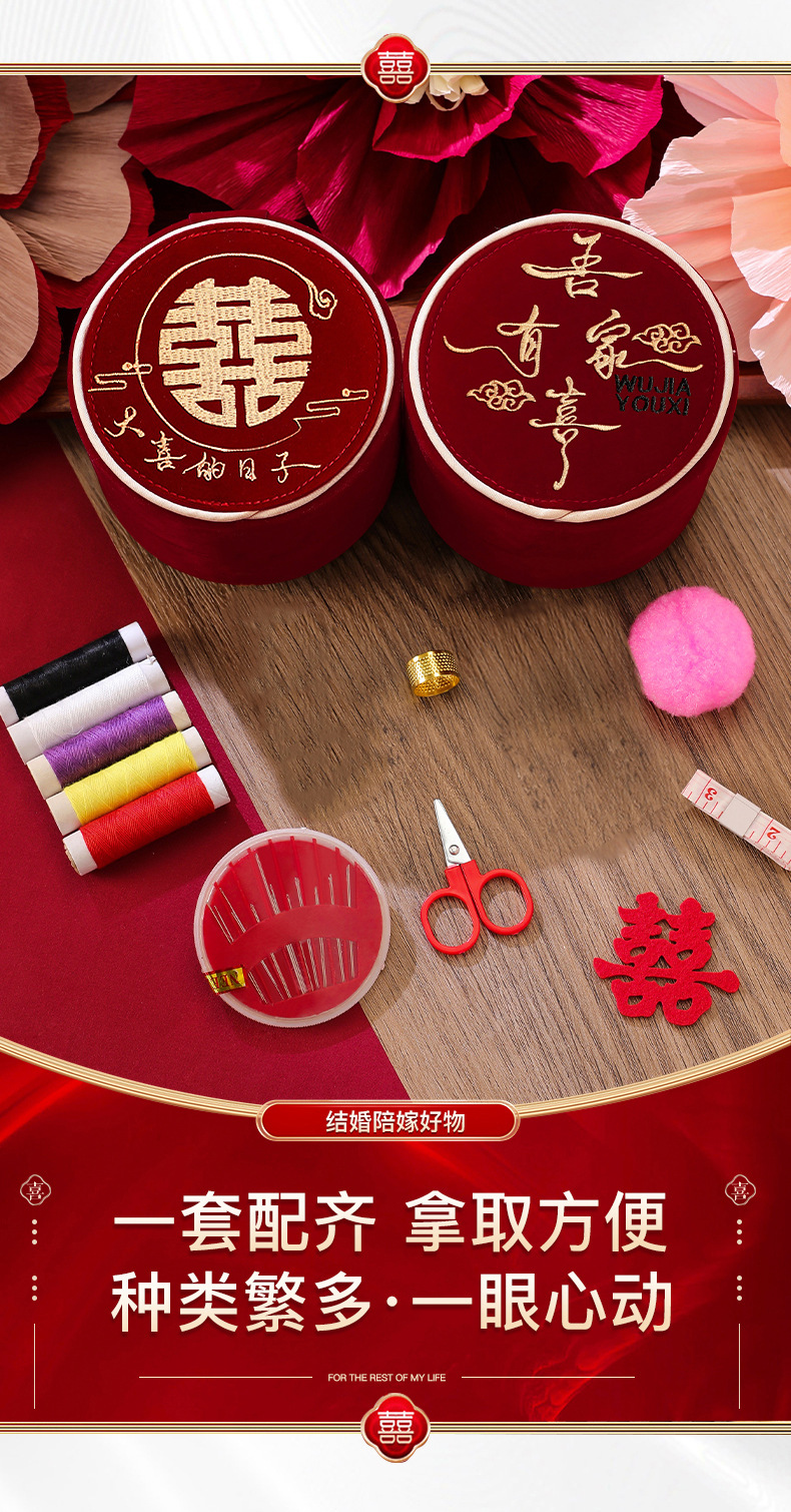Caja de aguja de boda, set de dote de mujer, aguja doméstica portátil rojo festivo, almacenamiento de artículos de boda