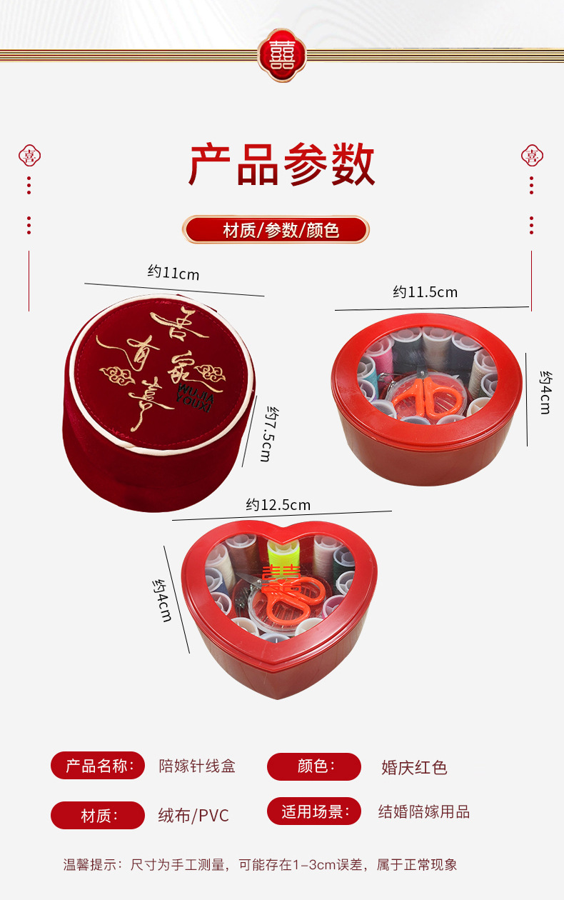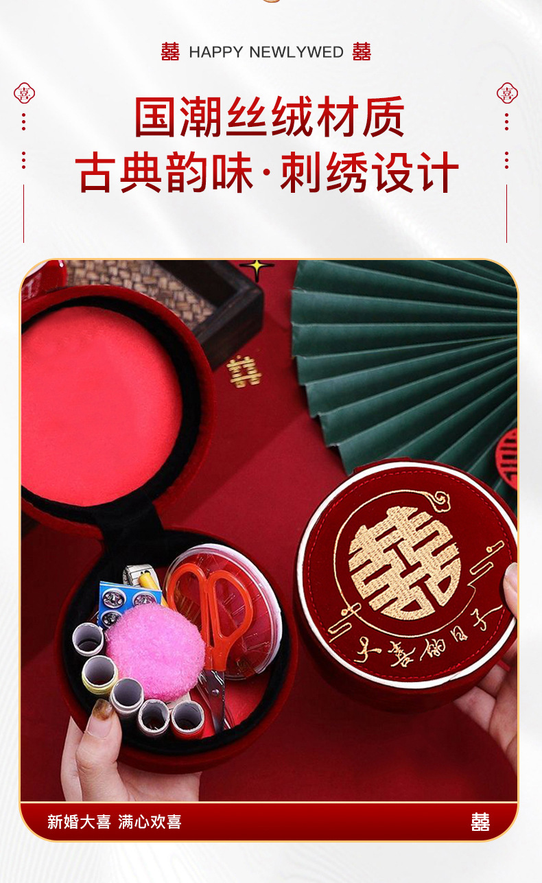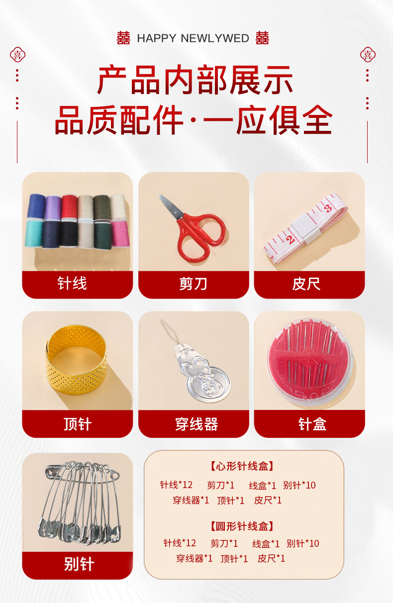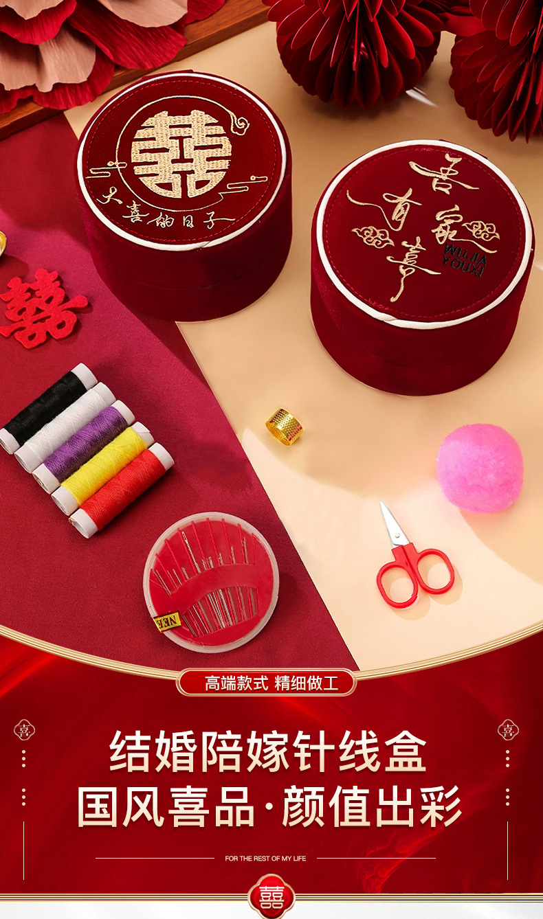 Caja de aguja de boda, set de dote de mujer, aguja doméstica portátil rojo festivo, almacenamiento de artículos de boda