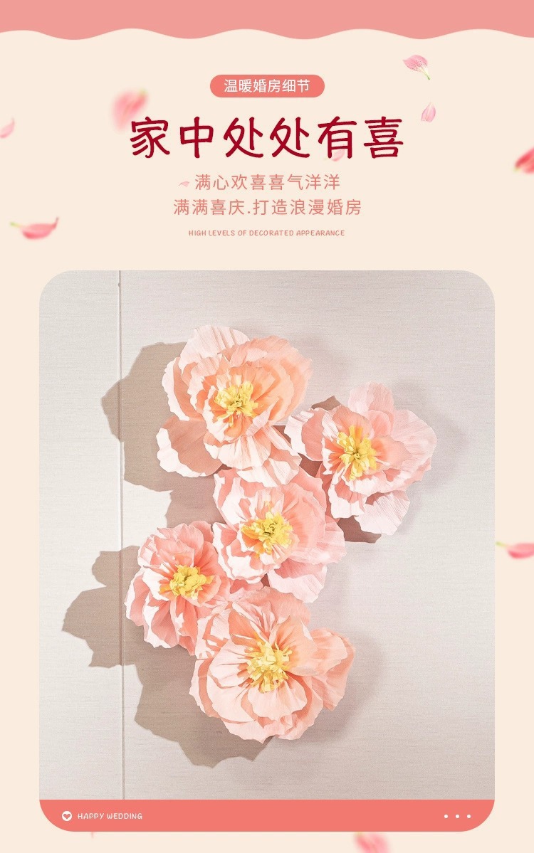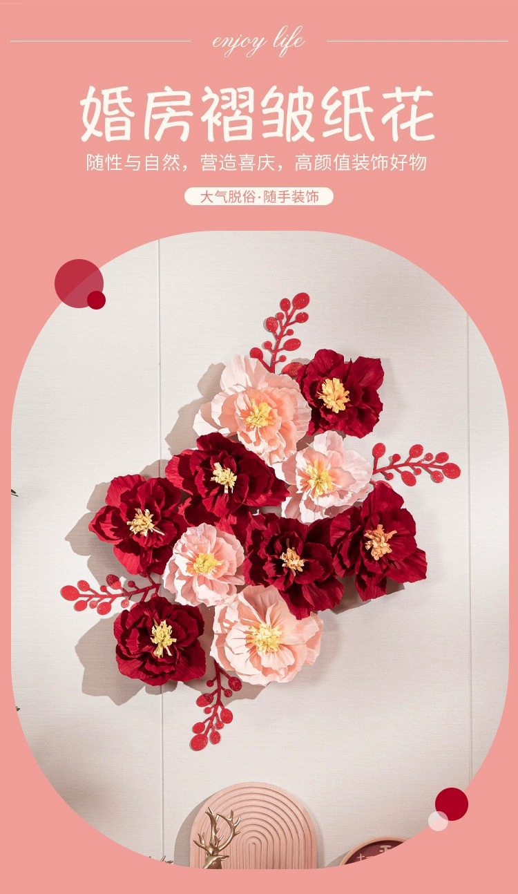 Flor de boda decoración flor de plegado tridimensional boda hombre y mujer nueva casa dormitorio pared de fondo dibujo de flores diseño de la casa de boda