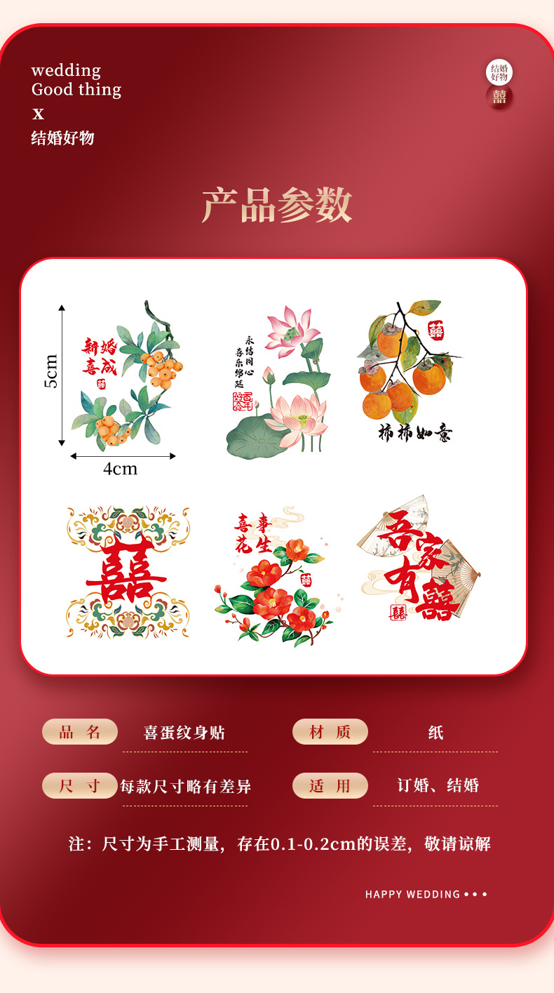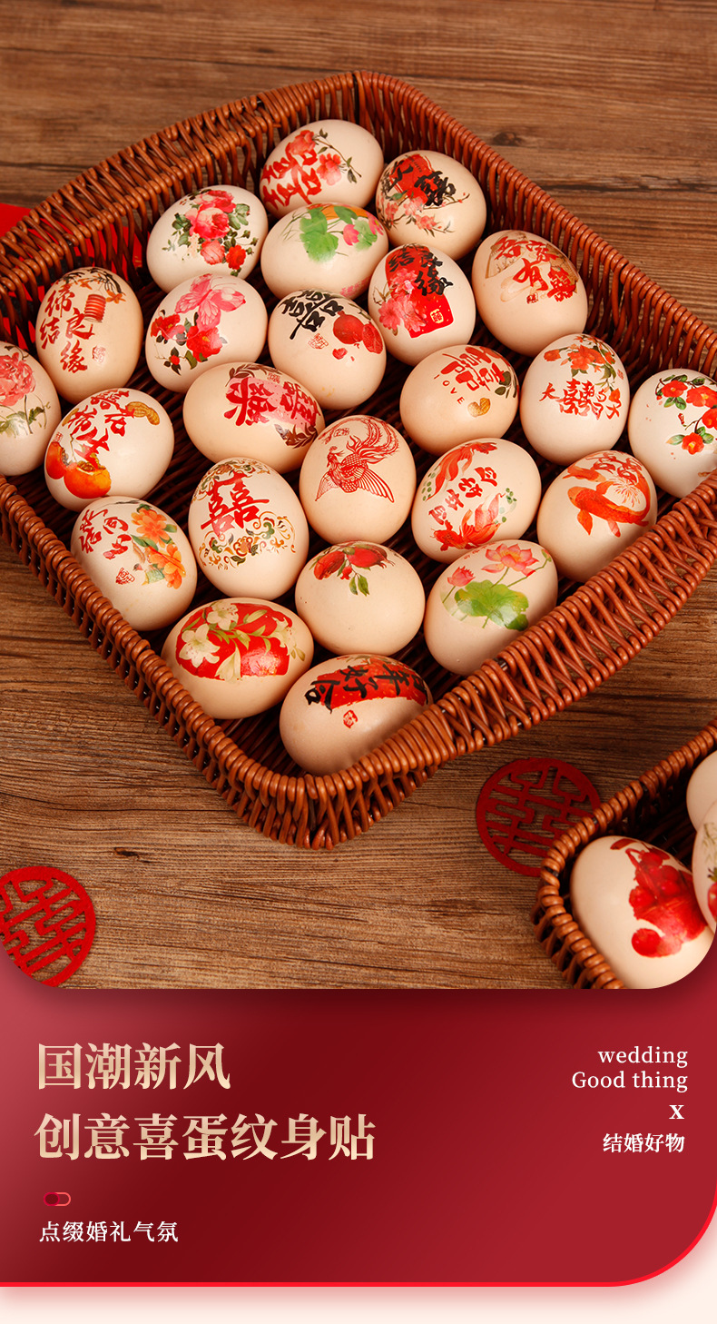 Pegatinas de bodas de compromiso diseño de pegatinas de huevo suministros de boda de estilo chino para la mujer de boda pegatinas de huevo de boda