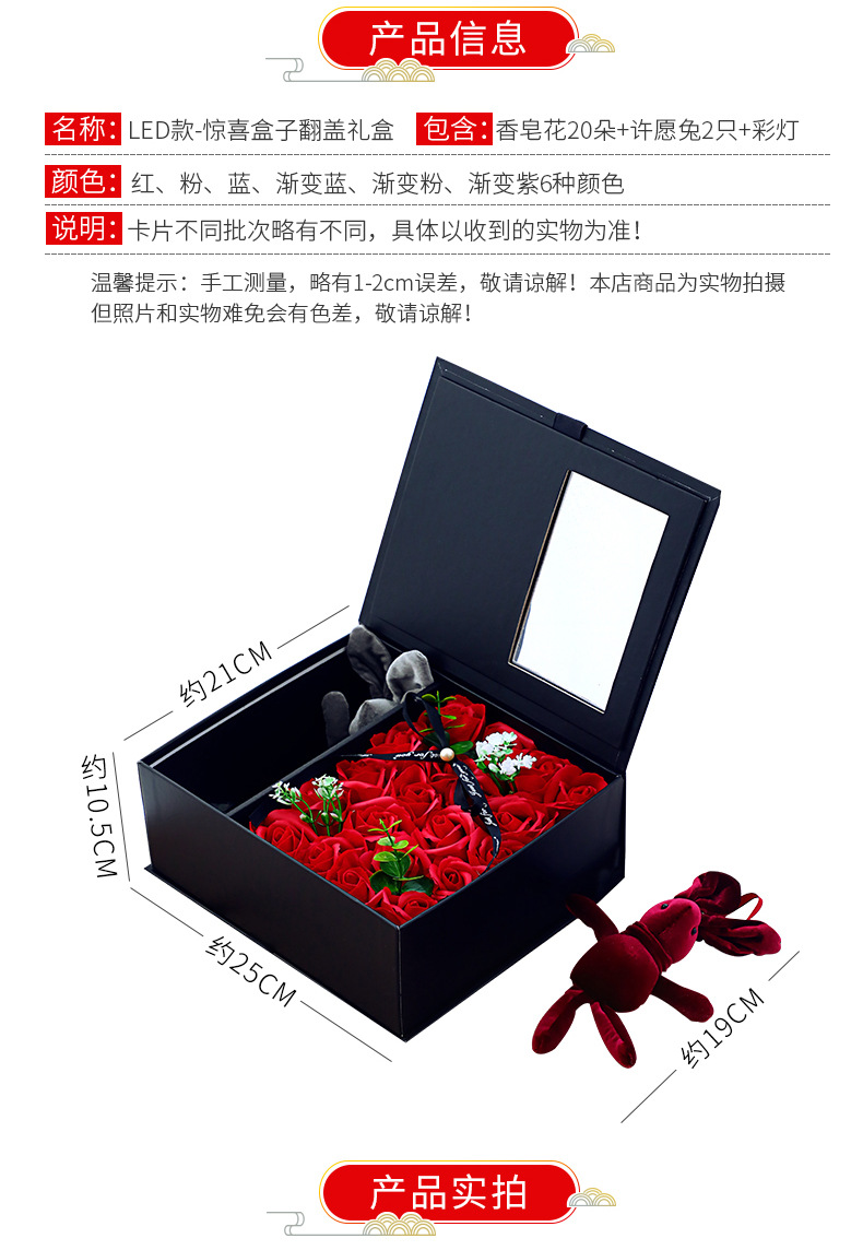 | Color | Conejo estrellado-rosa,11 flores de jabón-Azul,11 flores de jabón-púrpura oscuro,Polvo de caja cuadrada,Caja cuadrada roja,Caja cuadrada púrpura,Flip caja de conejo-rosa,Caja Flip conejo-polvo degradado,Flip caja conejo-degradado púrpura,Flip caja de conejo-Azul,Caja redonda rosa,Caja redonda negra |