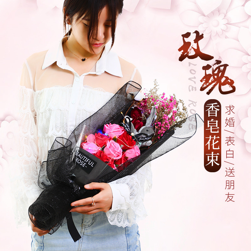 Regalo del Día de San Valentín para la novia esposa novias madre Navidad simulación jabón Rosa ola bola ramo