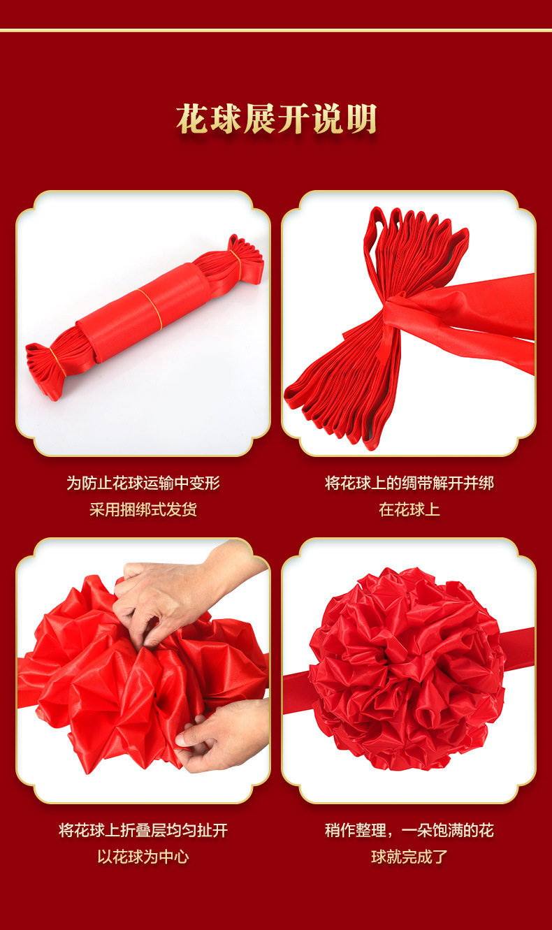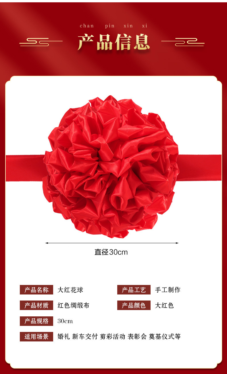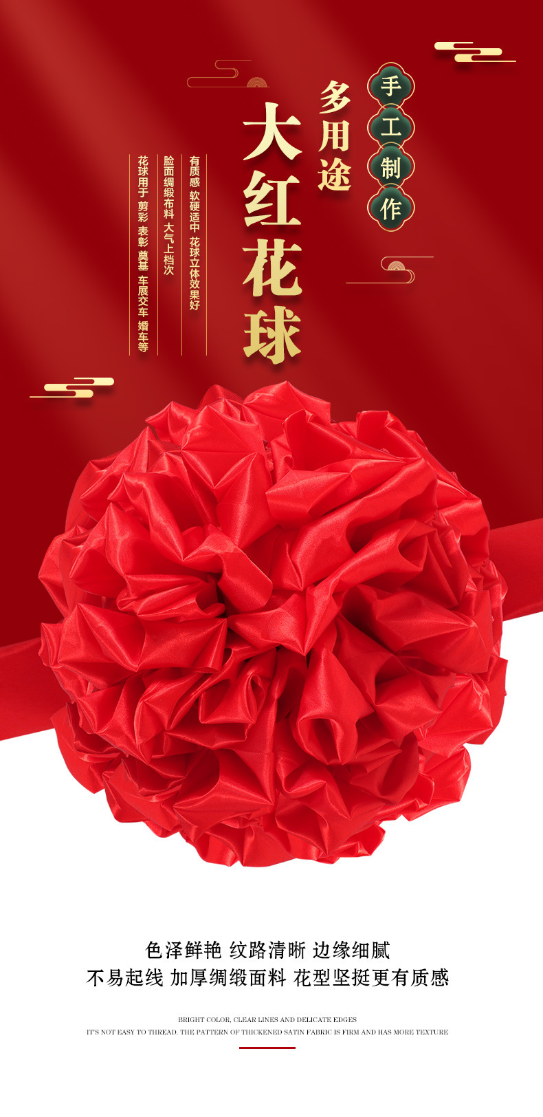 Boda Mentouhua Bola de bodas Big Red Flower Bola Apertura Ceremonia de corte de cinta Reconocimiento Big Red Flower Car Satin Red Paño Hortensia