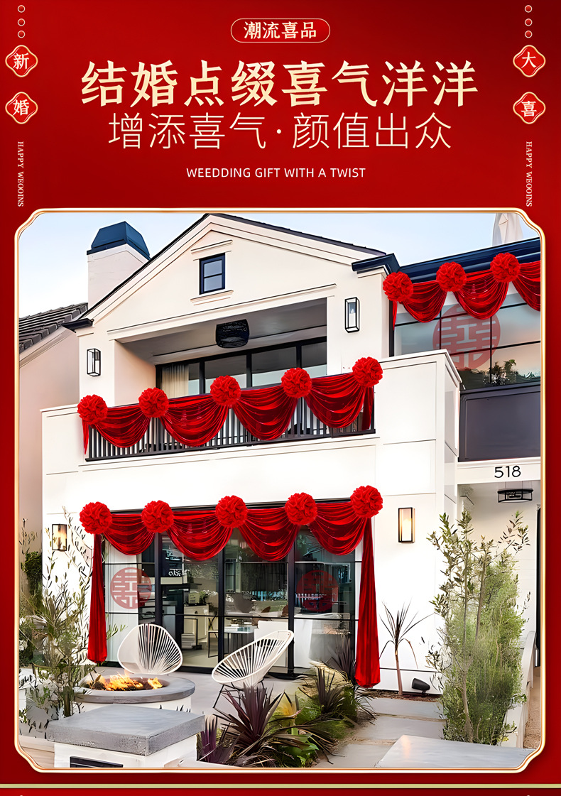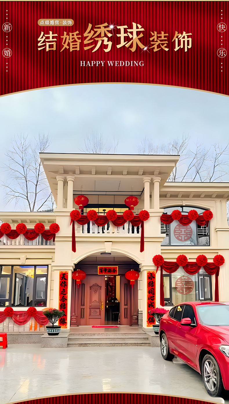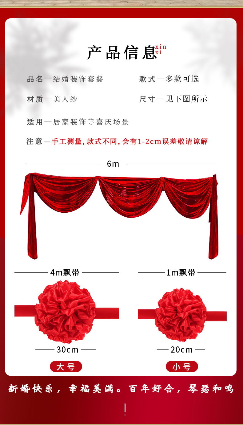 Boda Mentouhua Bola de bodas Big Red Flower Bola Apertura Ceremonia de corte de cinta Reconocimiento Big Red Flower Car Satin Red Paño Hortensia