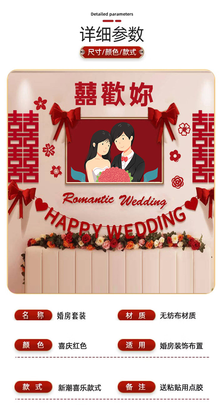 | Especificaciones | Love Life · traje de decoración de la habitación de la boda,Boda romántica · traje de decoración de la habitación de la boda |