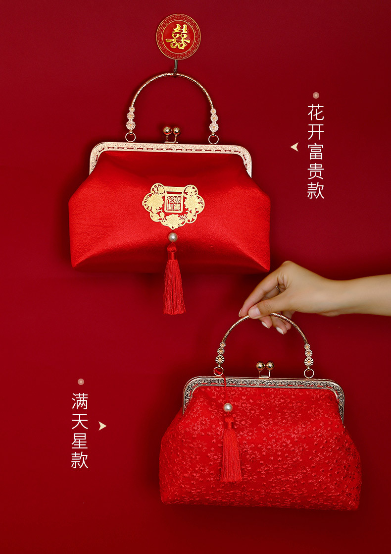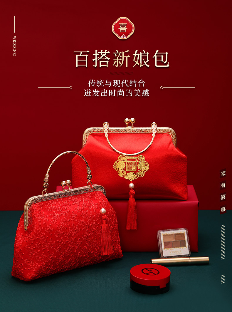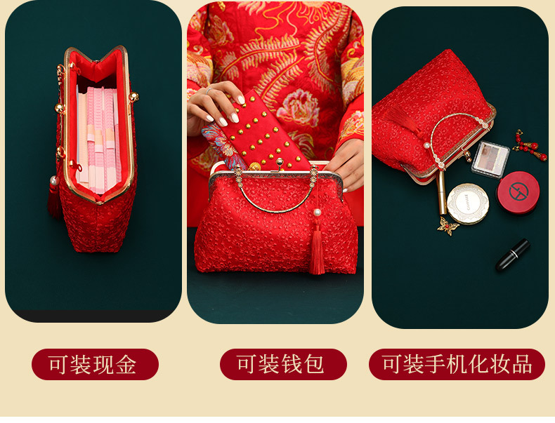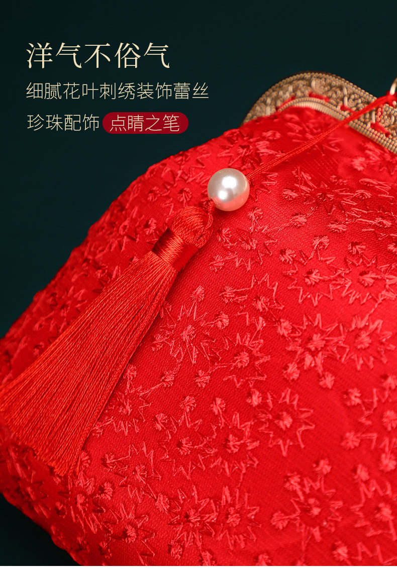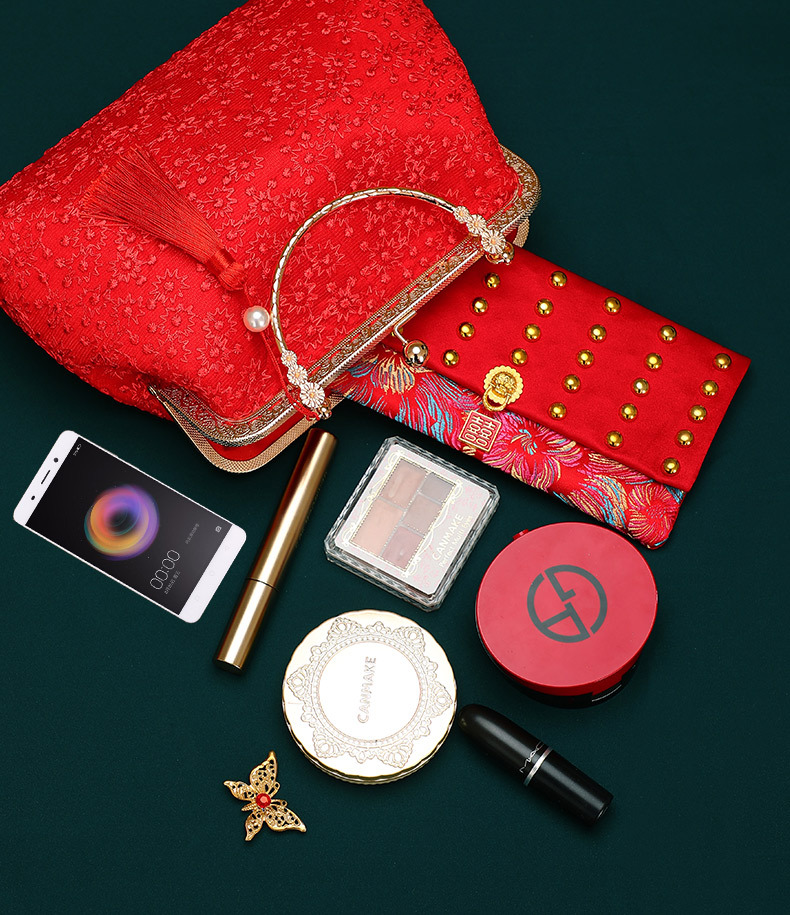 Boda bolso de suministros de la novia boda bolsa roja bolsa de regalo nupcial dote bordado bolsa de cosméticos