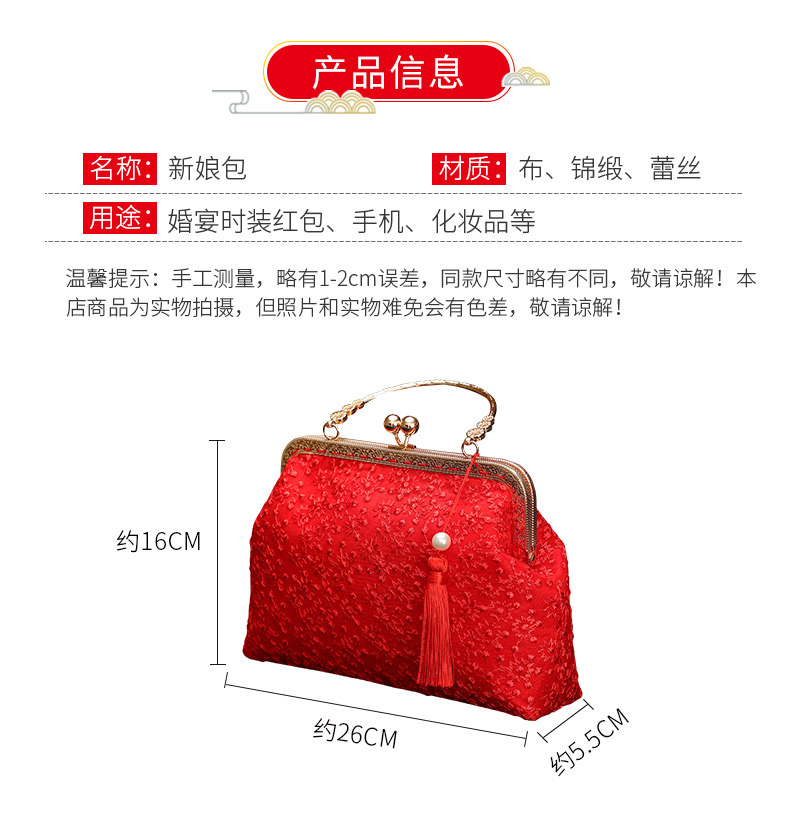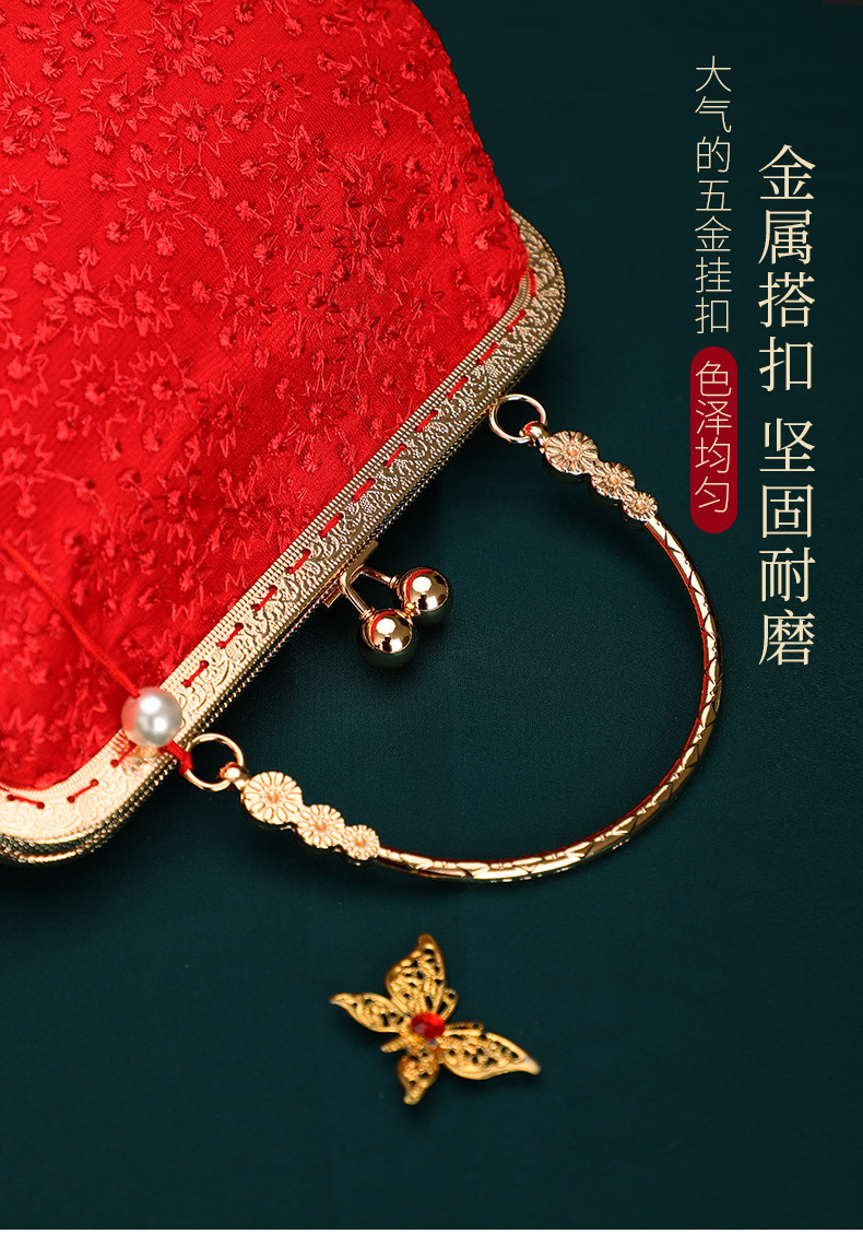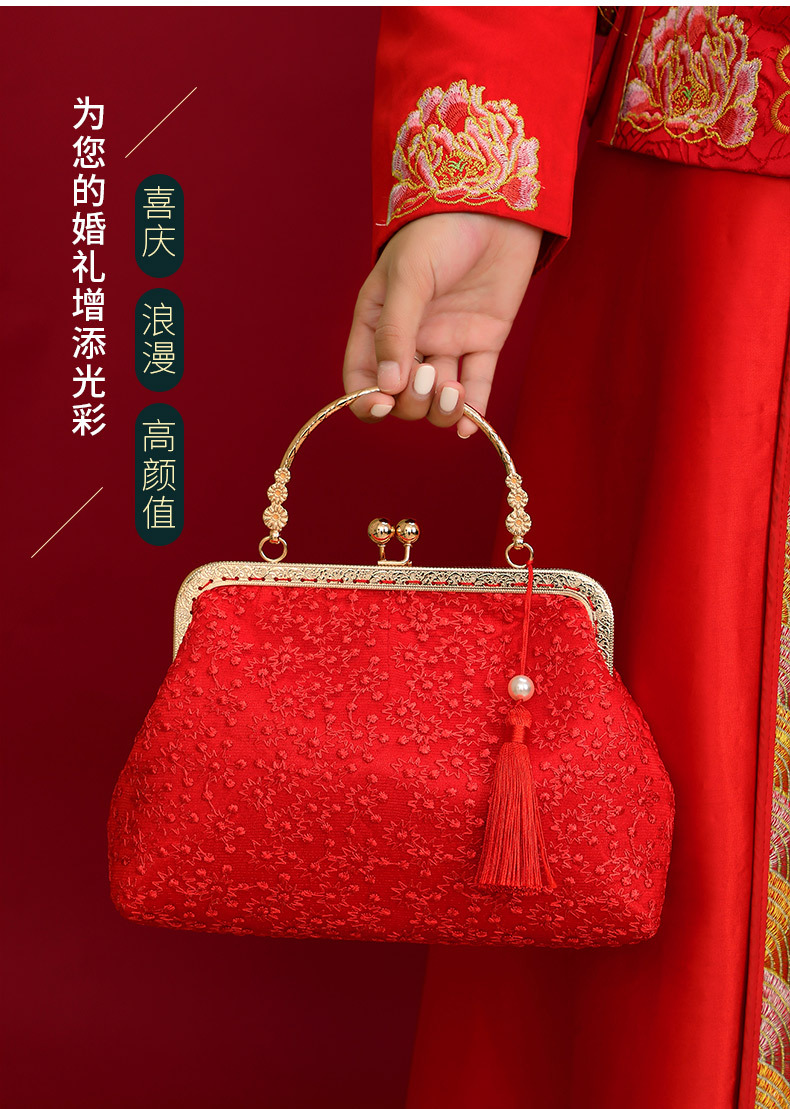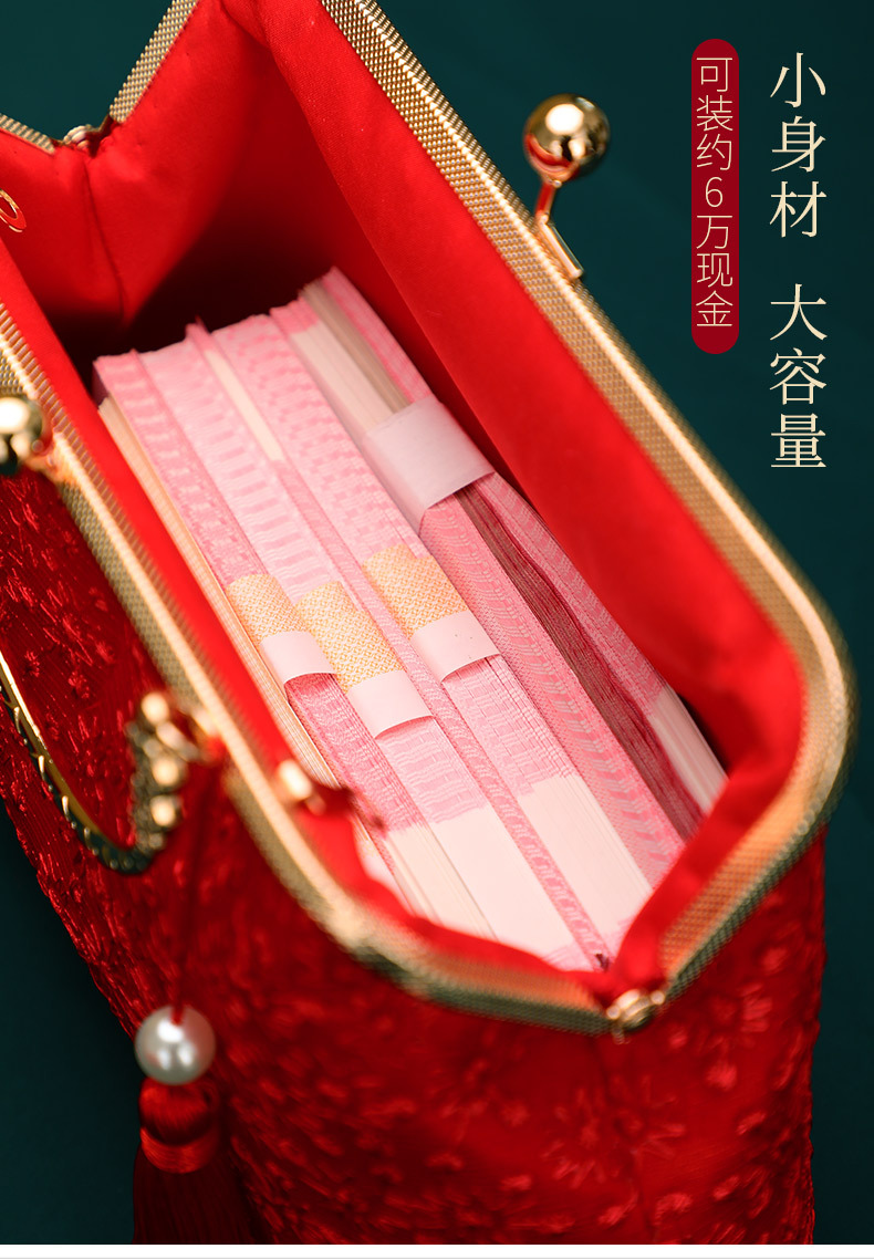 Boda bolso de suministros de la novia boda bolsa roja bolsa de regalo nupcial dote bordado bolsa de cosméticos