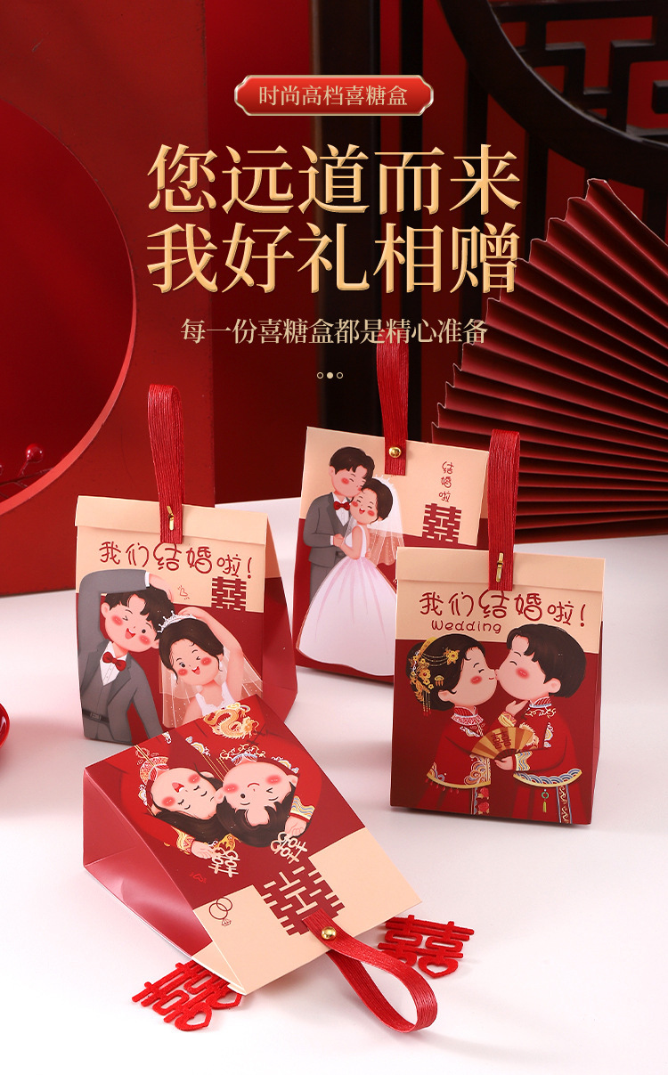 Caja de dulces de boda nueva bolsa de dulces de dibujos animados caja de dulces de mano de boda caja de dulces portátil caja vacía