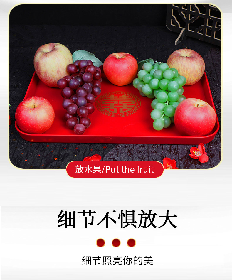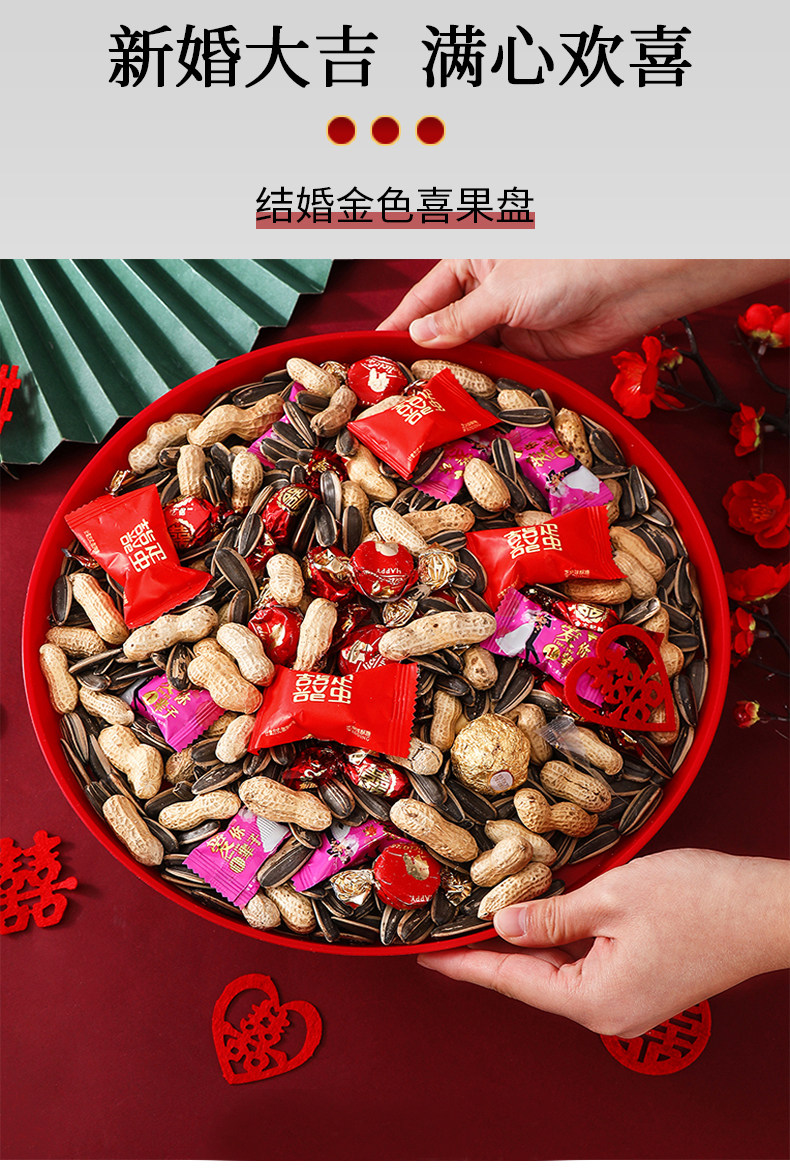Venta al por mayor de boda en forma de XI bandeja de boda de plástico chino plato de fruta seca redondo en forma de XI placa roja novia té Placa de caramelo