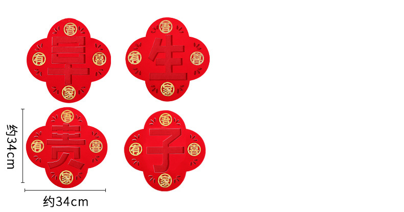 | Color | Flocado parche Oro 4/bolsa,Doble felicidad estilo beso 1 PAR + nacimiento prematuro de su hijo (excluyendo frutas secas),Paquete de decoración de prensa |