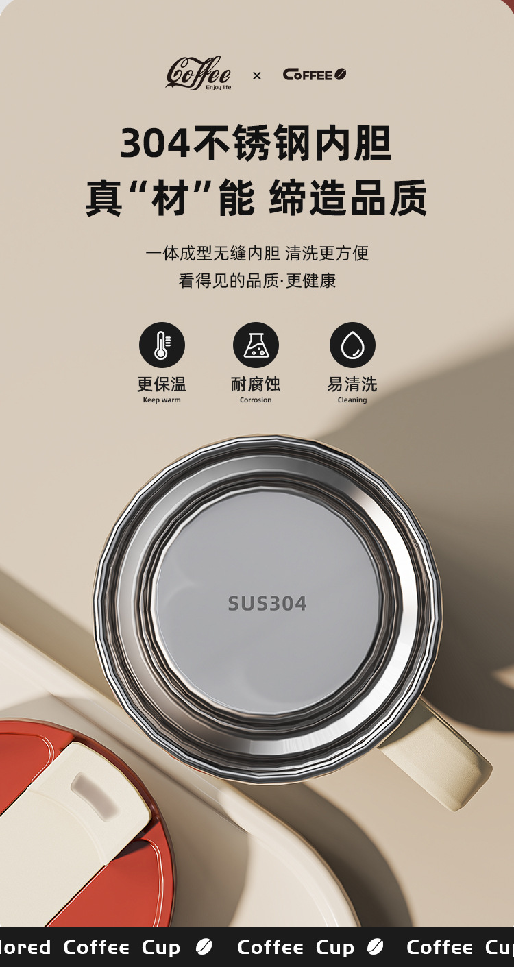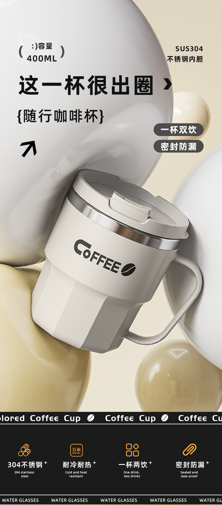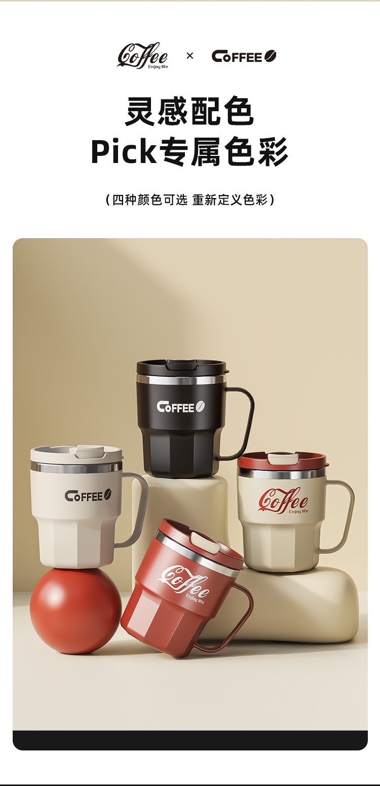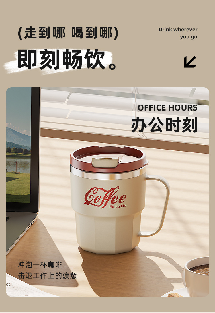 Taza transfronteriza de acero inoxidable 304 para hombres y mujeres, taza de oficina con tapa, taza de café, modelo popular de TEMU, disponible con etiqueta.
