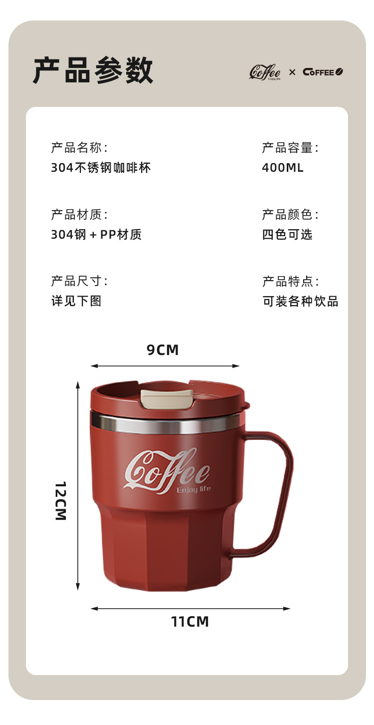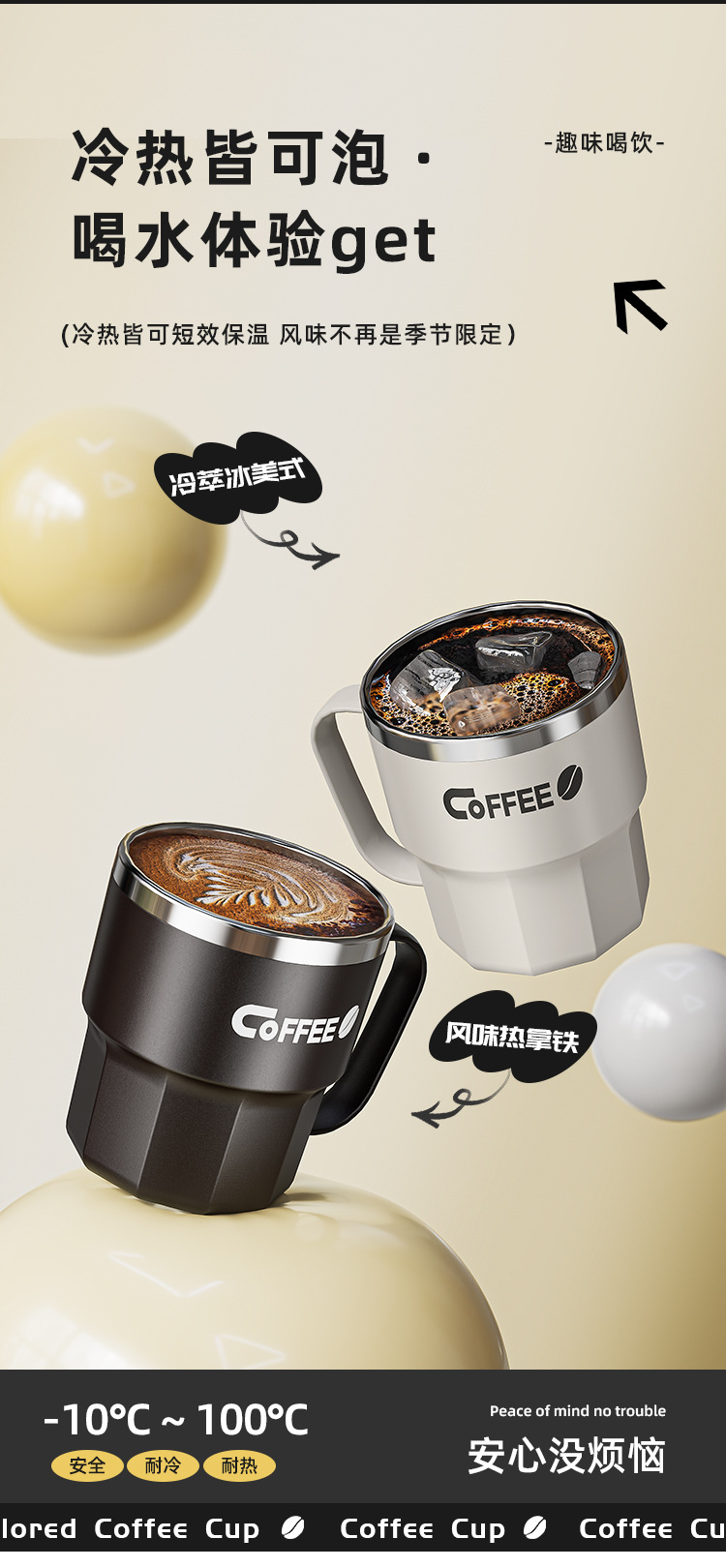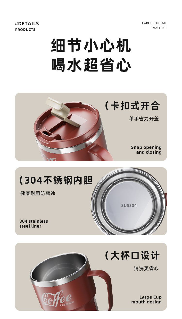 Taza transfronteriza de acero inoxidable 304 para hombres y mujeres, taza de oficina con tapa, taza de café, modelo popular de TEMU, disponible con etiqueta.