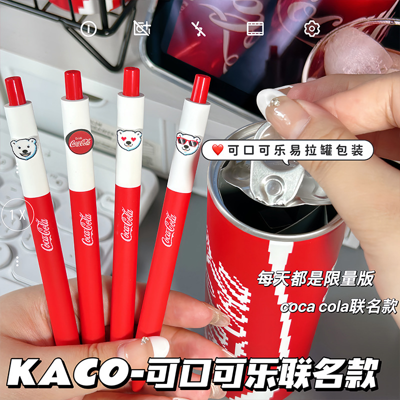 KACO Coca-Cola anillo de tracción conjunto bolígrafo neutro alto valor facial ins estudiantes presionar el tema de cepillo rápido secado ST cabeza bolígrafo negro