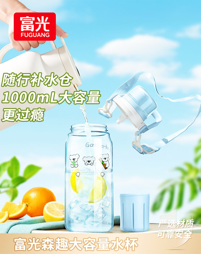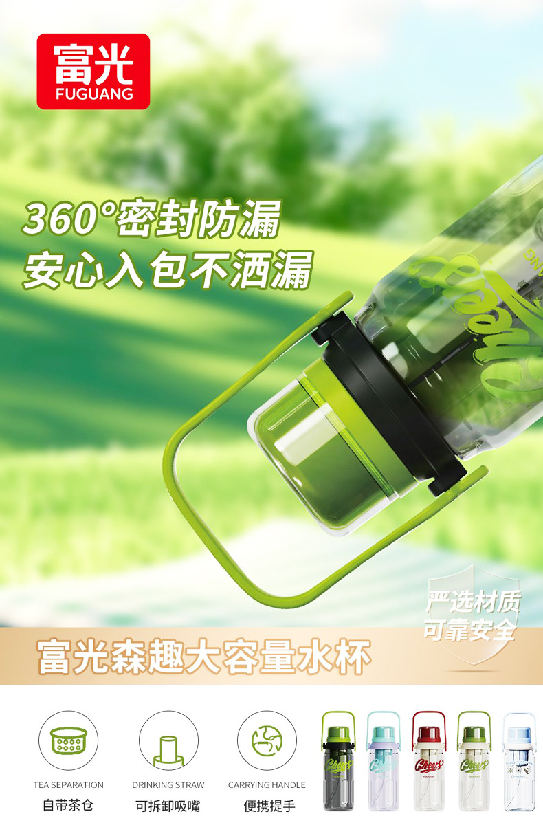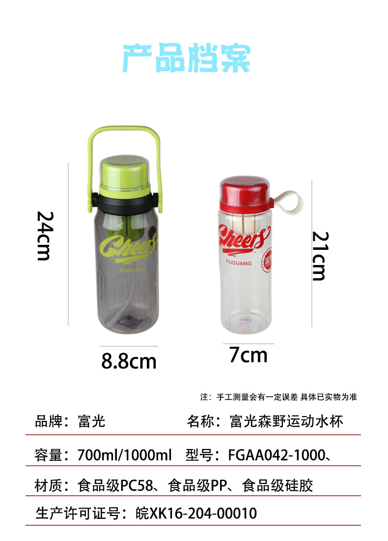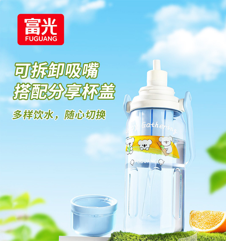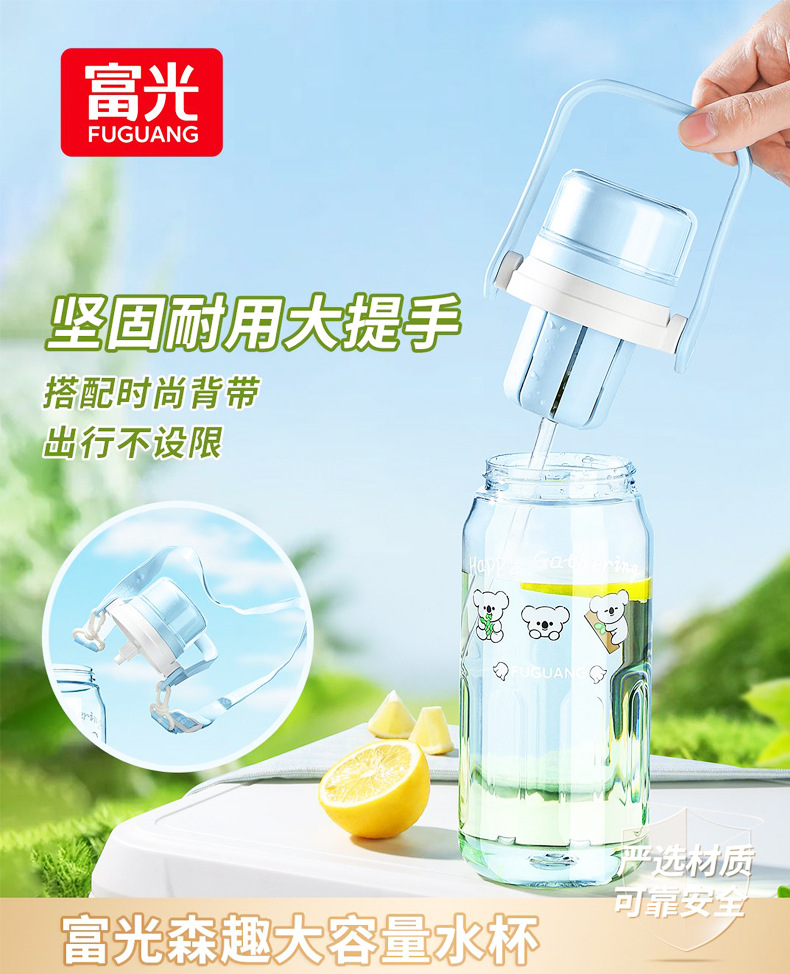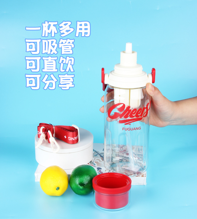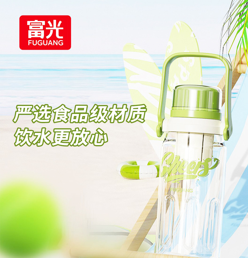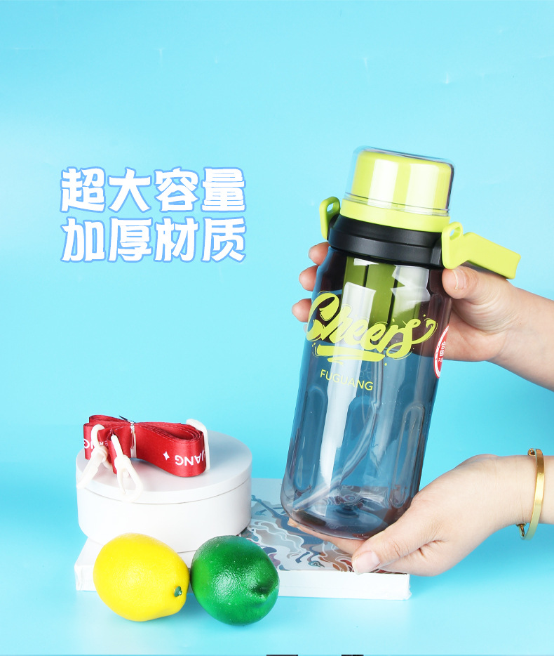 Vaso de plástico Fuguang, botella de agua deportiva de gran capacidad, taza de agua, taza de paja de fitness para estudiantes al aire libre para hombres y mujeres portátiles, al por mayor
