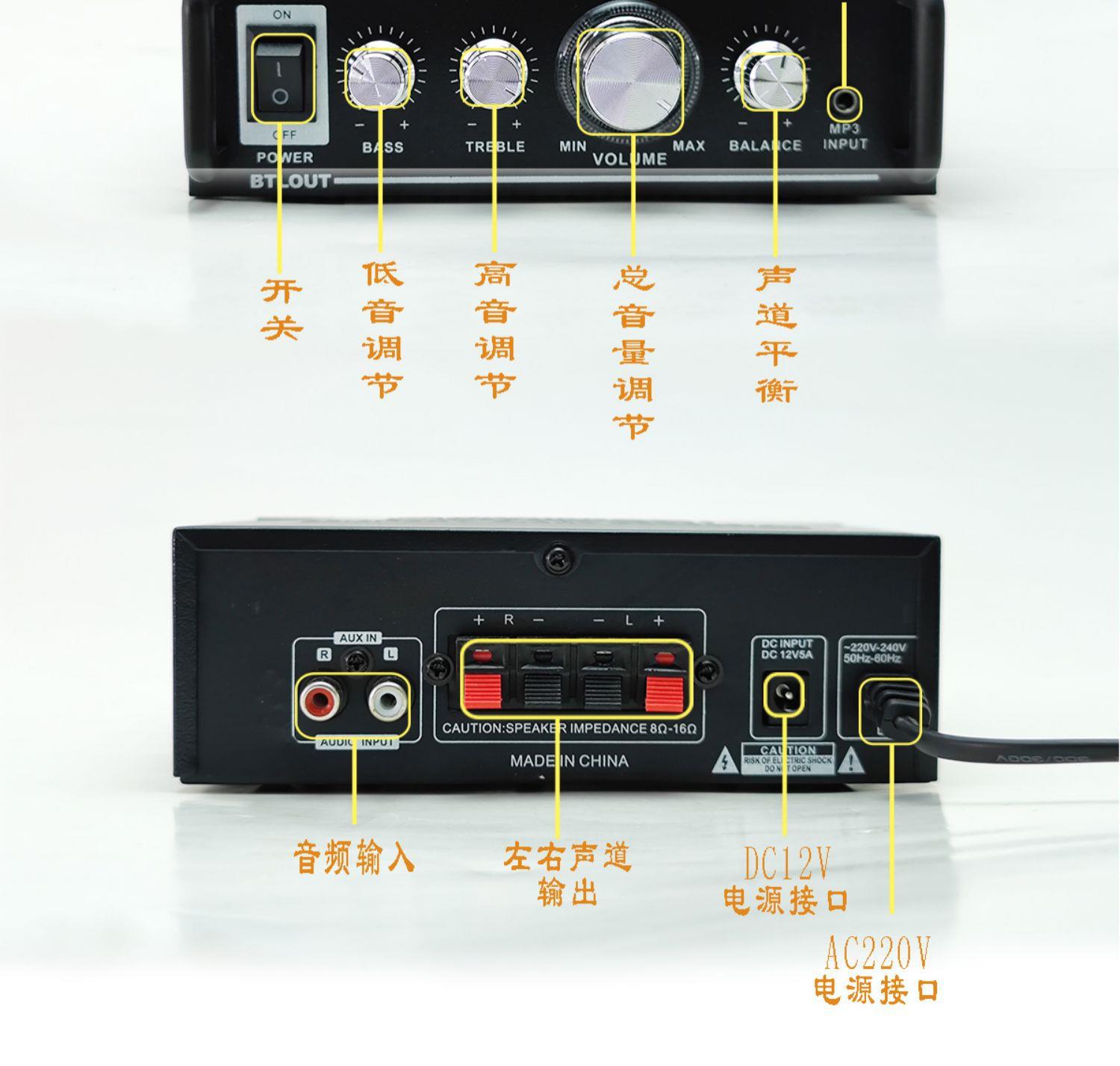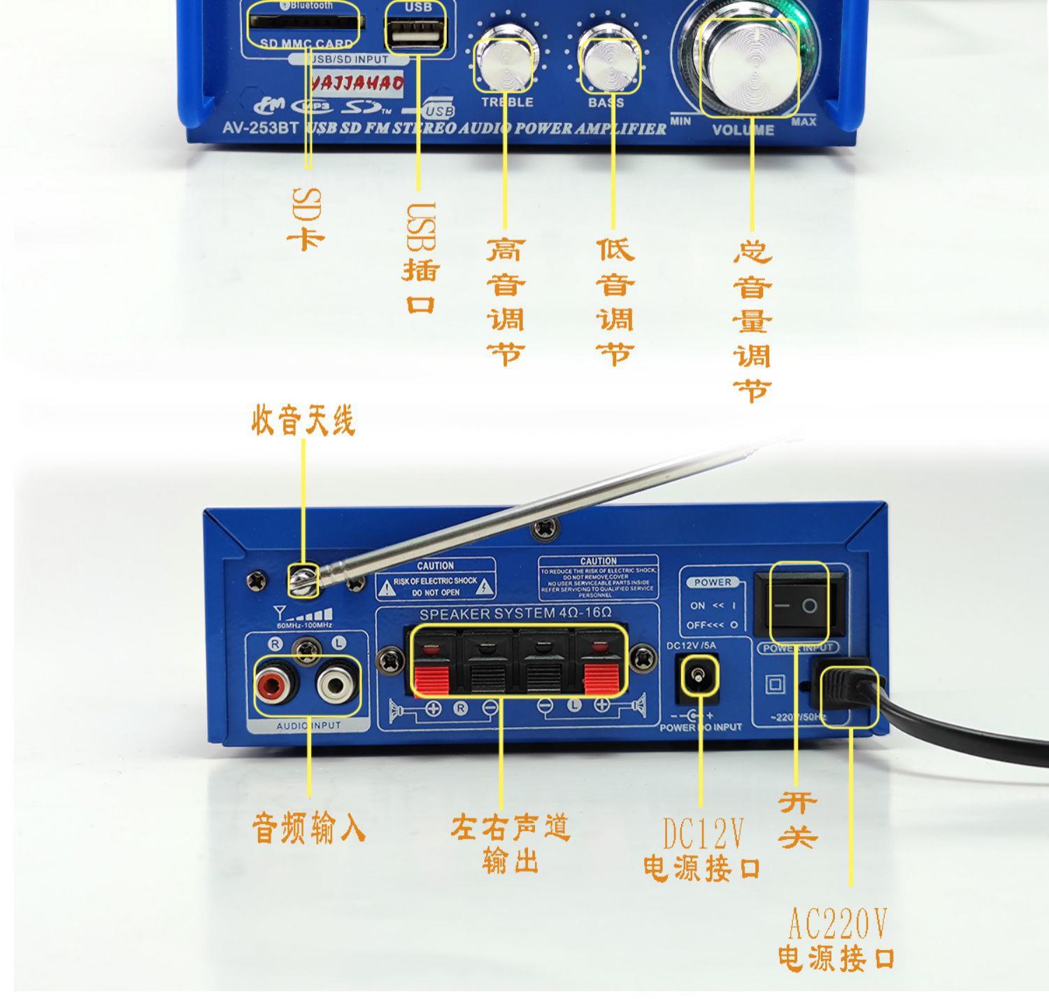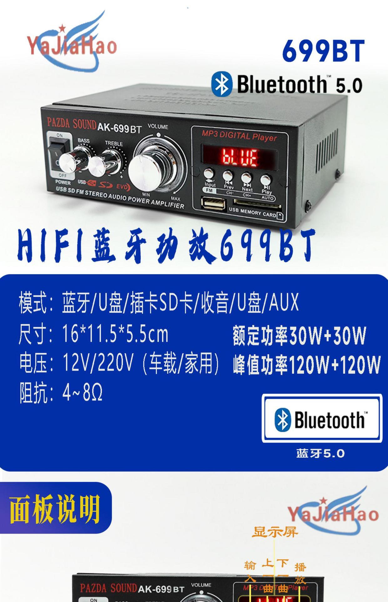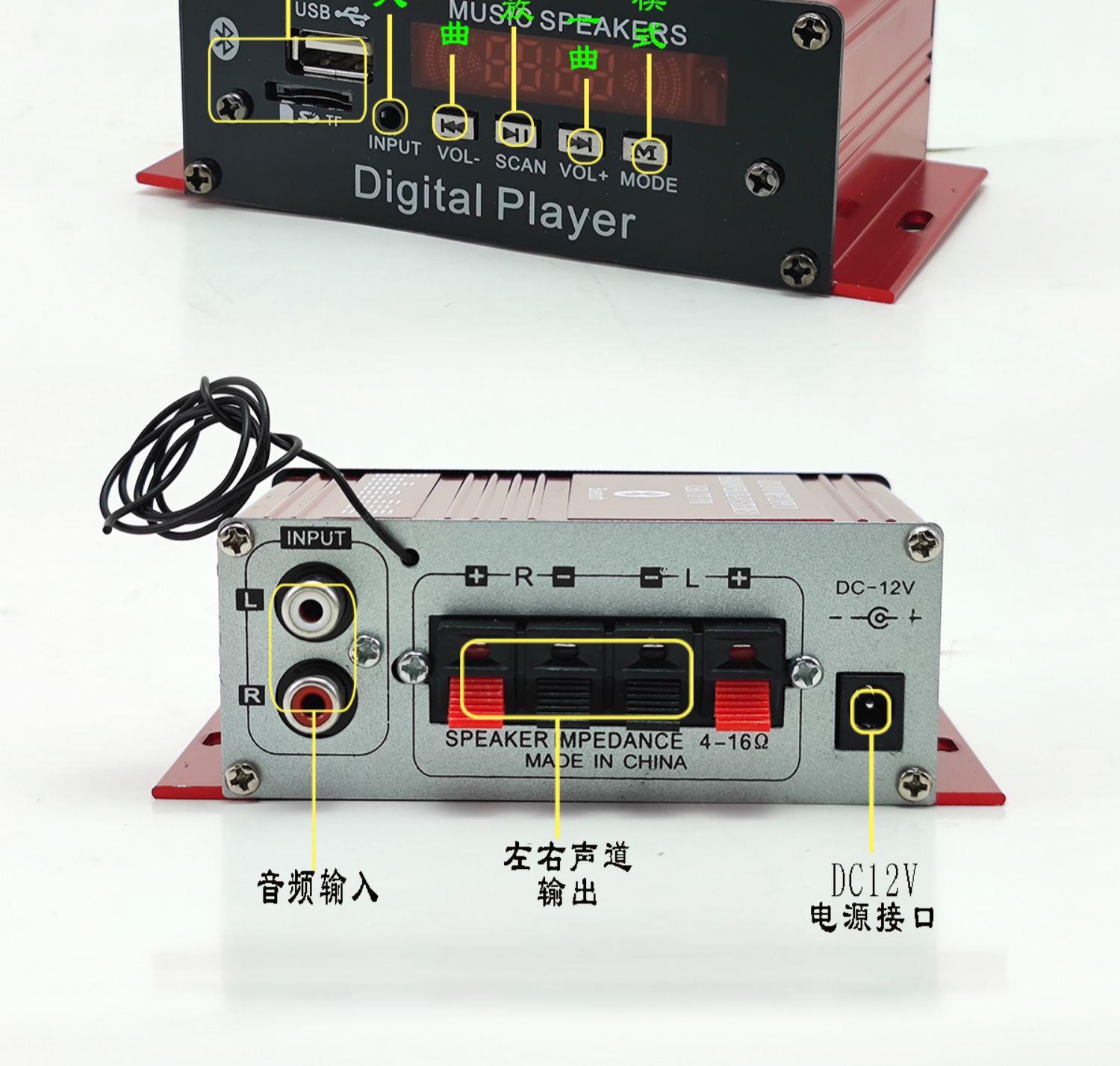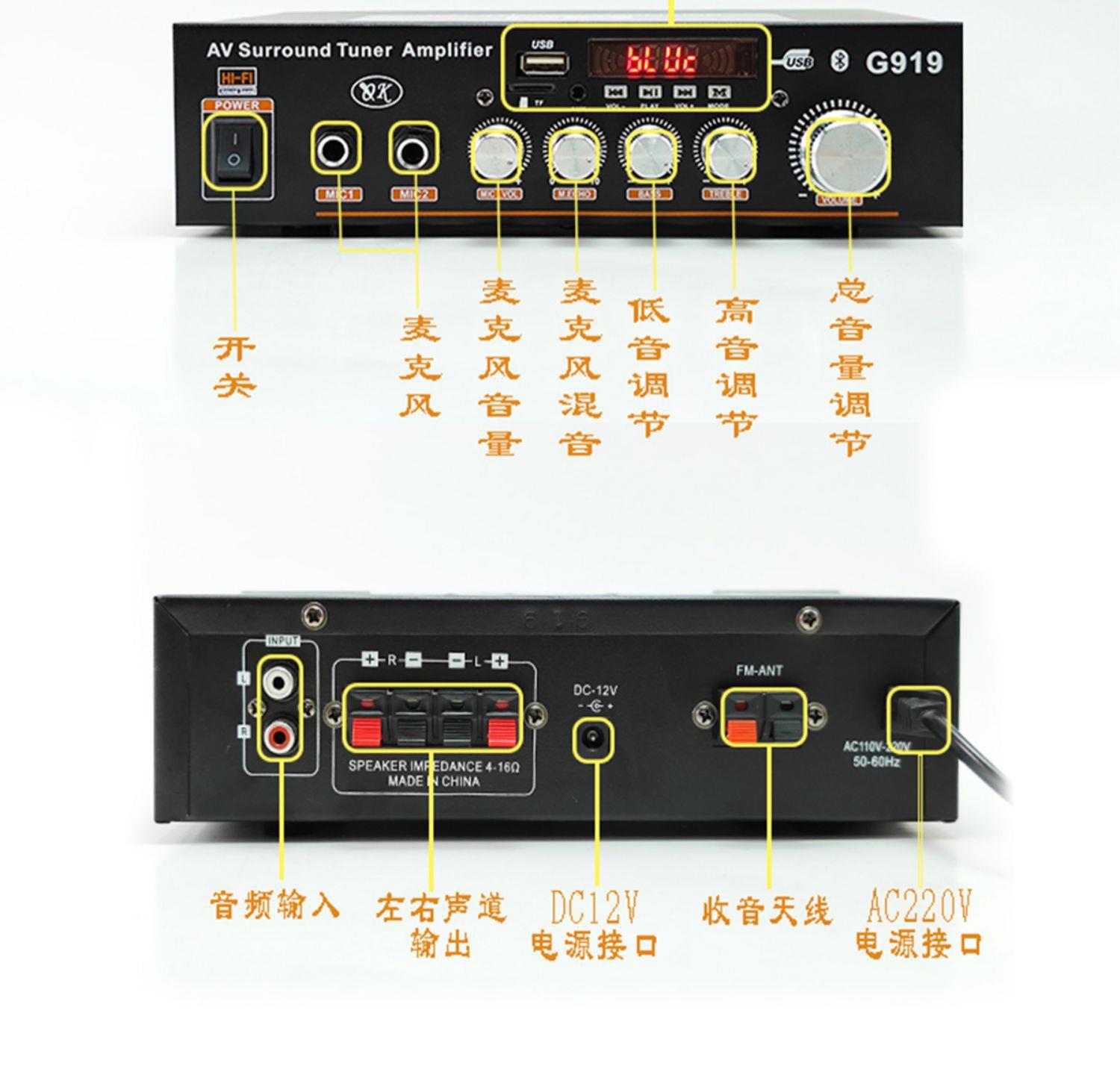 | Especificaciones del producto | Amplificador de potencia digital G919 independiente,Amplificador de potencia digital G20 independiente,253BT azul,253D único 12V azul,699BT independiente,698B-MP3 entrada de audio negro sin tarjeta,G6S independiente con control remoto,G8 independiente con control remoto,A6 individual 12V sin Bluetooth,El cableado debe comprarse por separado (cable de audio/cable de CC) |