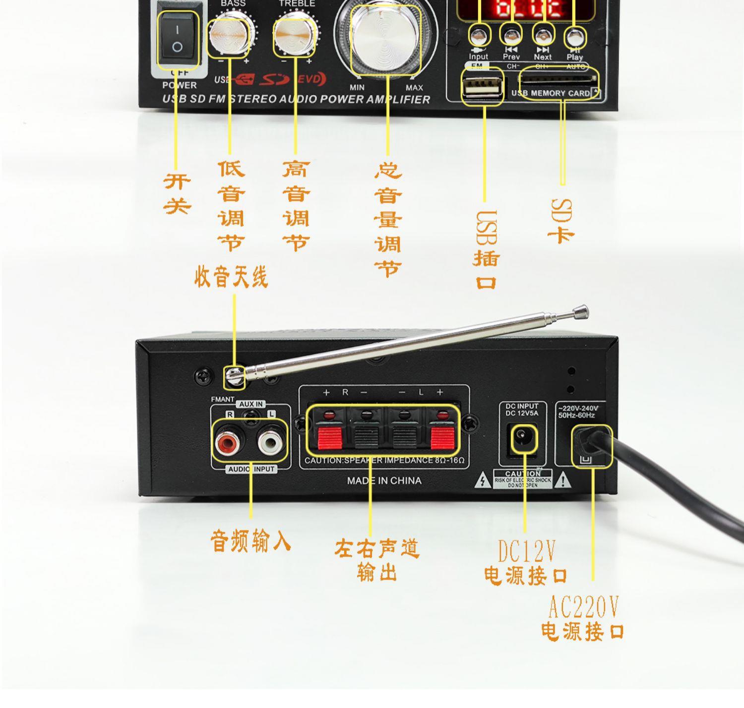 Pequeño mini Bluetooth amplificador de potencia del altavoz del tablero del amplificador tarjeta U disco radio 12V coche 220V