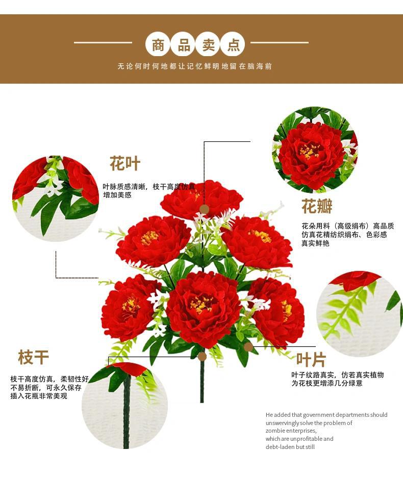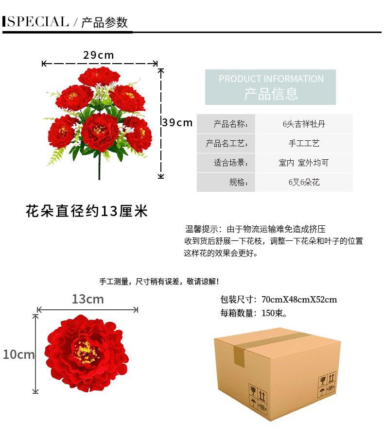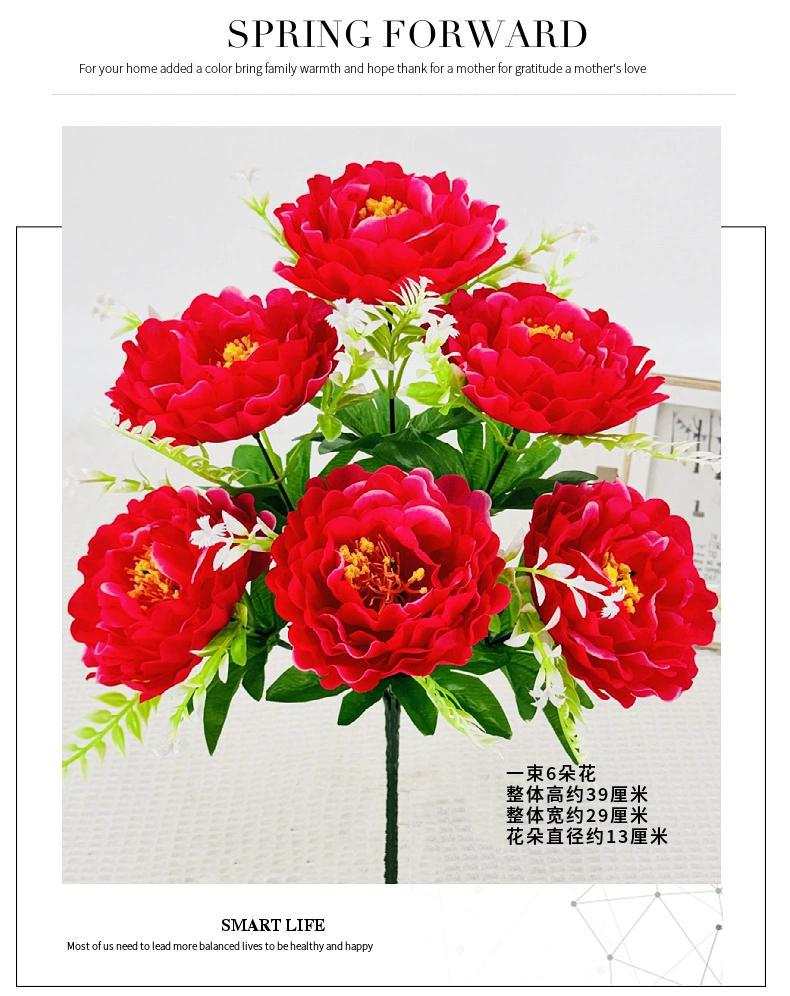 Peonía de imitación de flores 6 auspiciosas flores de peonía decoración de sala de estar flores interiores y exteriores flores de decoración de alta calidad