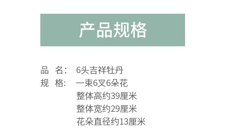 | Color | Seis peonías auspiciosas son rojas puras, seis peonías auspiciosas son rojas puras, seis peonías auspiciosas son rosas puras, seis peonías auspiciosas son rojas puras, seis peonías auspiciosas son naranjas puras, seis peonías auspiciosas son champán, seis peonías auspiciosas son amarillas puras, seis peonías auspiciosas son blancas puras, seis peonías auspiciosas son azules, seis peonías auspiciosas son rosas brillantes. |