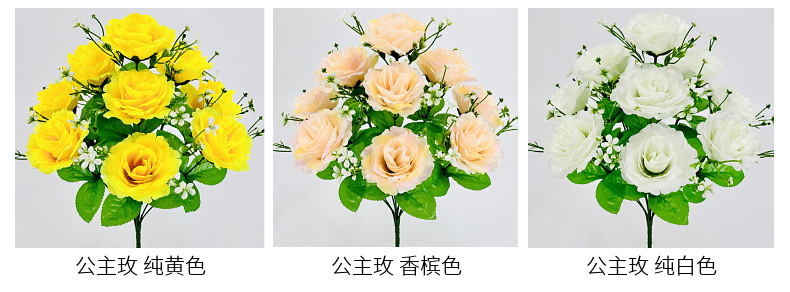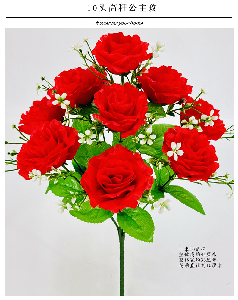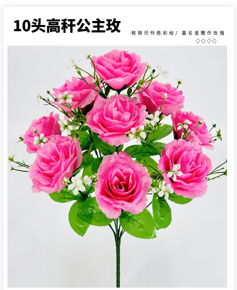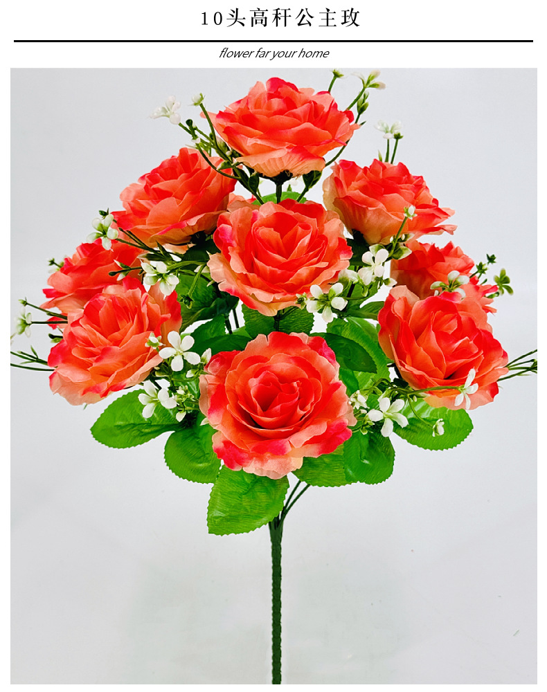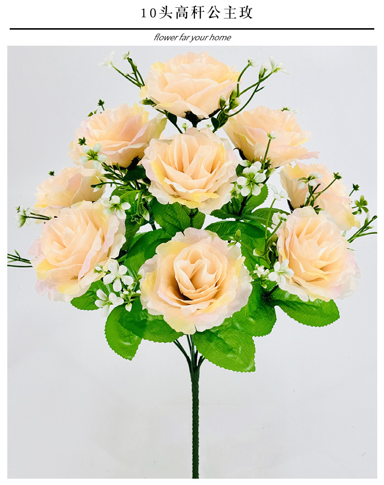Flores de imitación de 10 flores de alto tallo princesa rosa tela de seda rosa decoración del hogar de alta calidad sala de estar mesa de comedor arreglos de flores