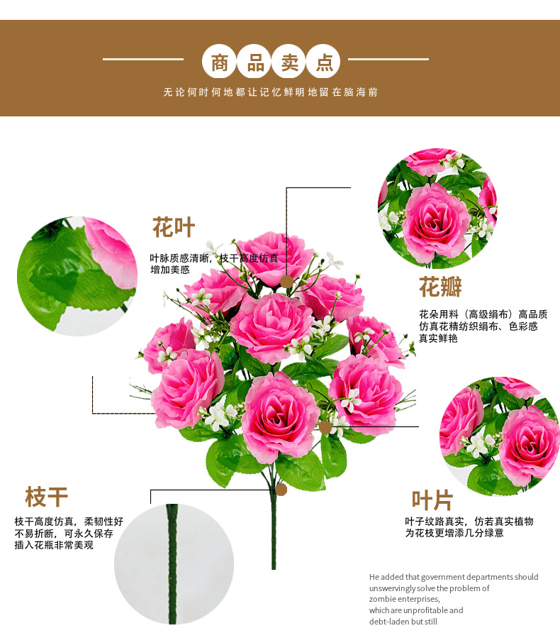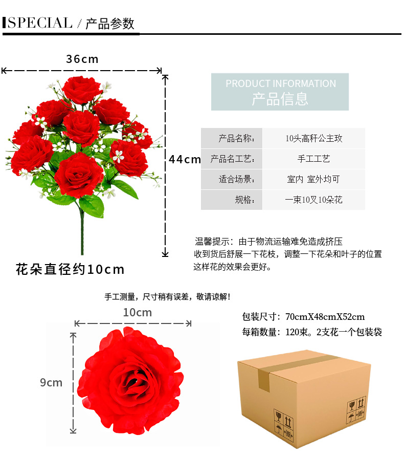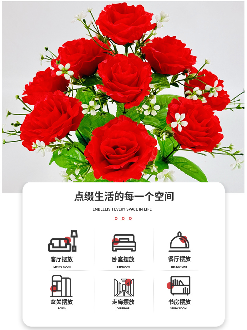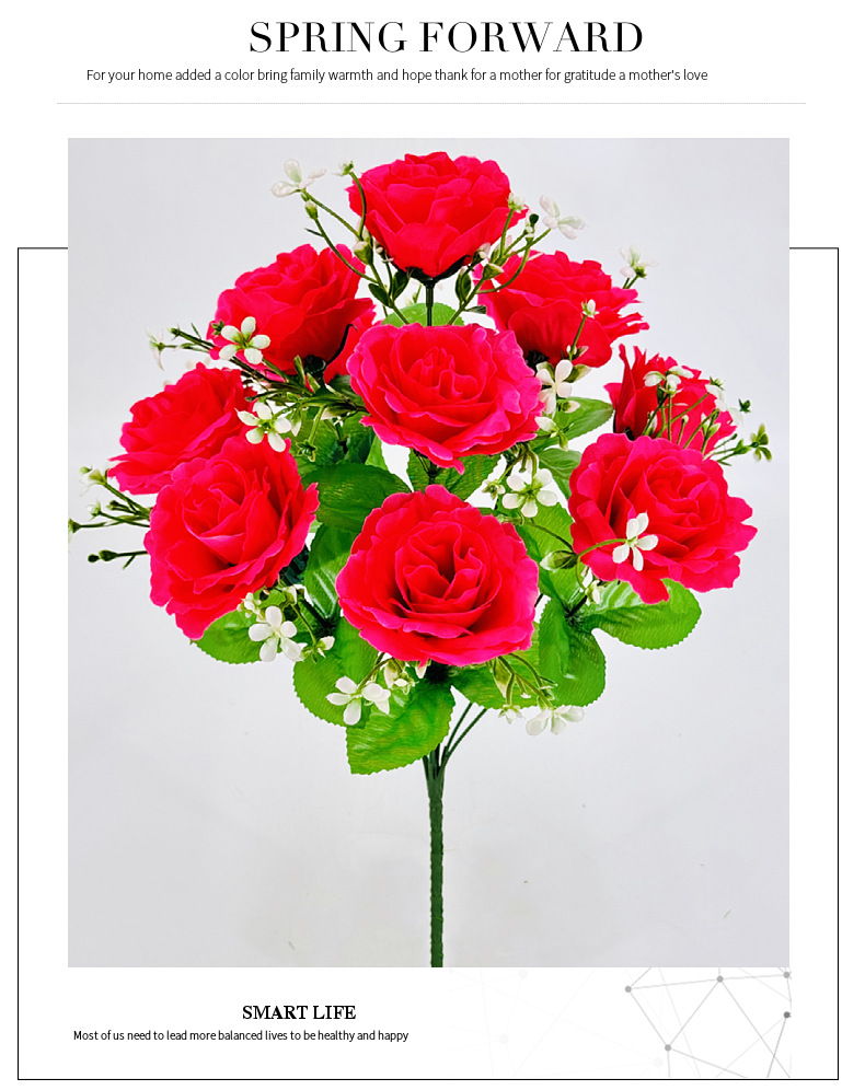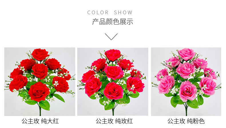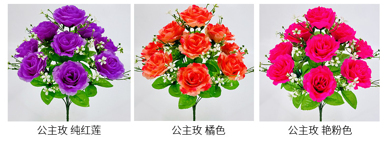 Flores de imitación de 10 flores de alto tallo princesa rosa tela de seda rosa decoración del hogar de alta calidad sala de estar mesa de comedor arreglos de flores