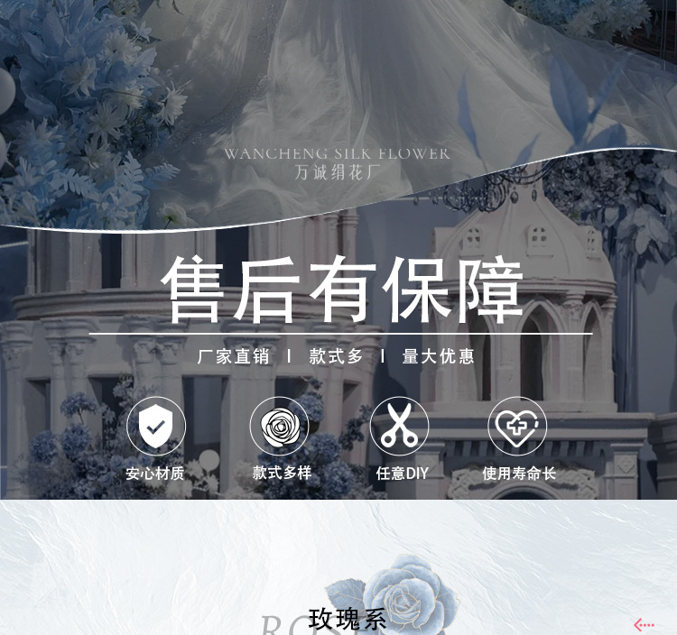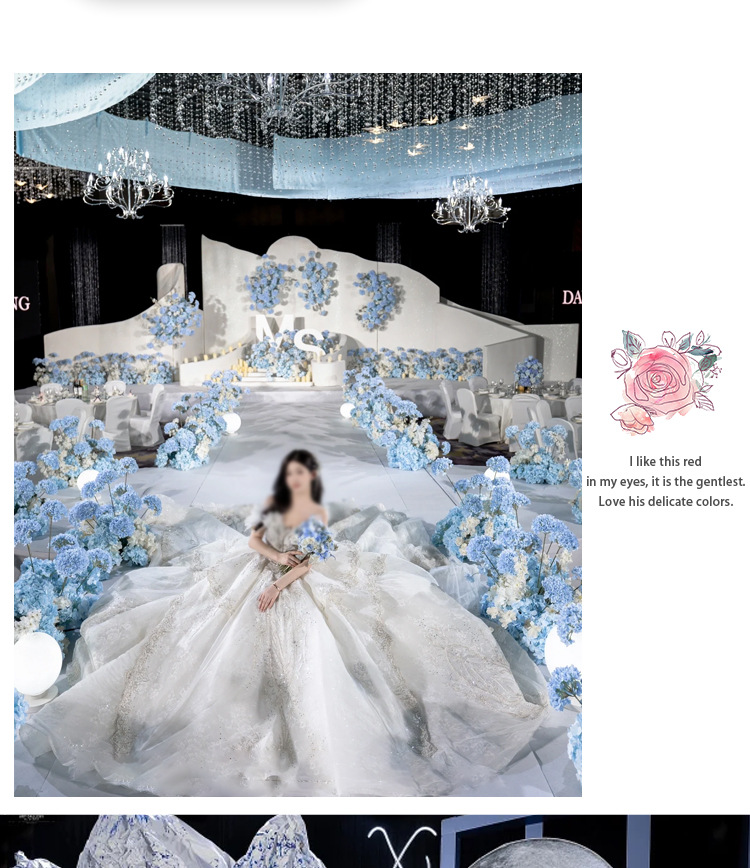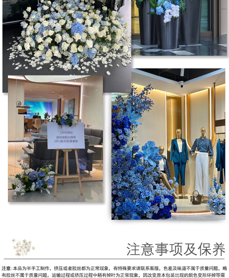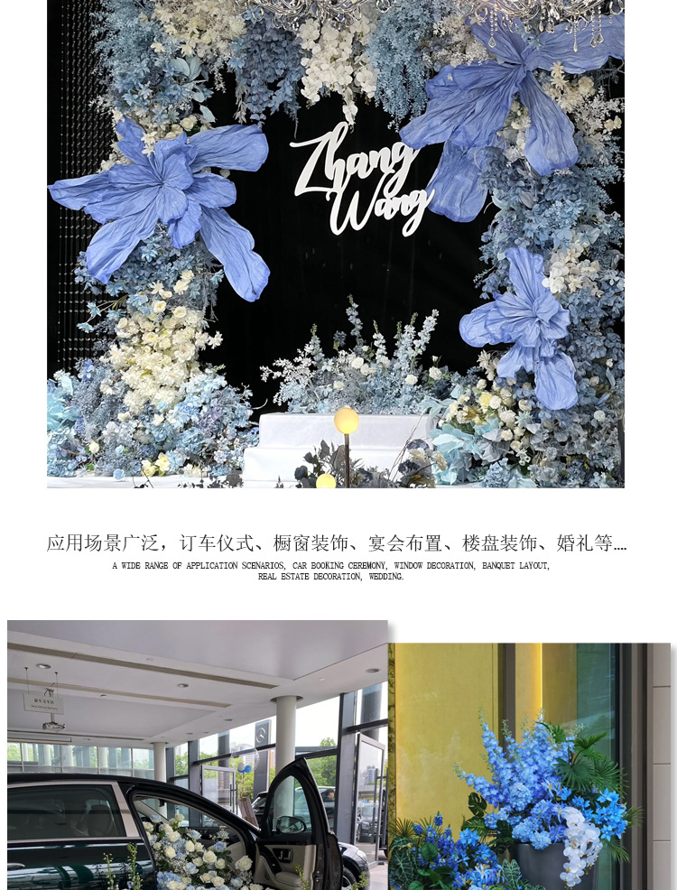 Haze azul decoración de la boda flor de seda flor Hotel fotografía flor de la pared arreglo floral Yingbin distrito Camino de plomo flor artificial