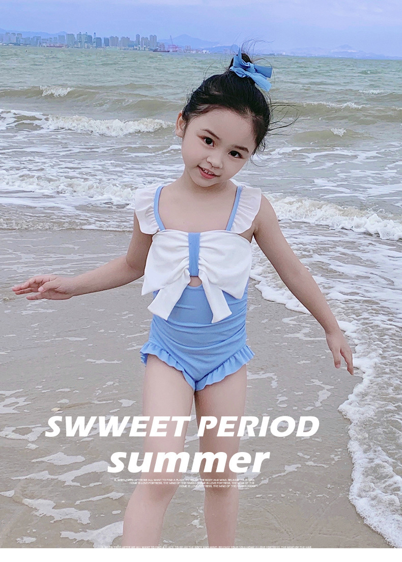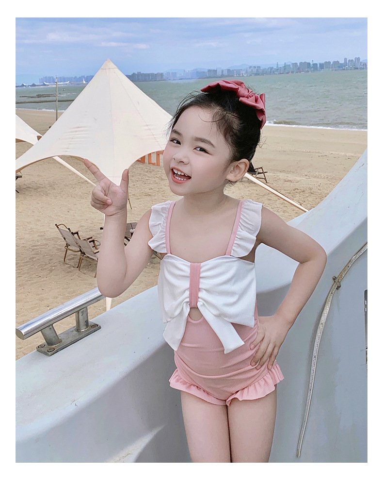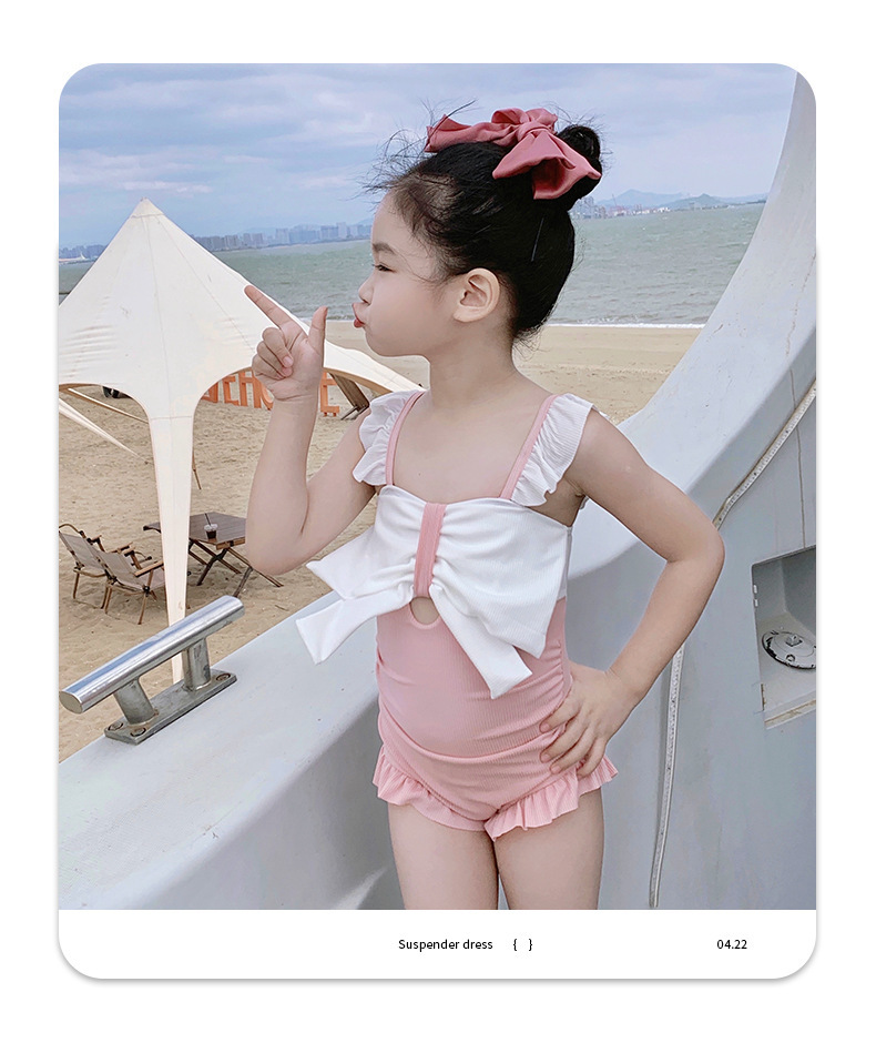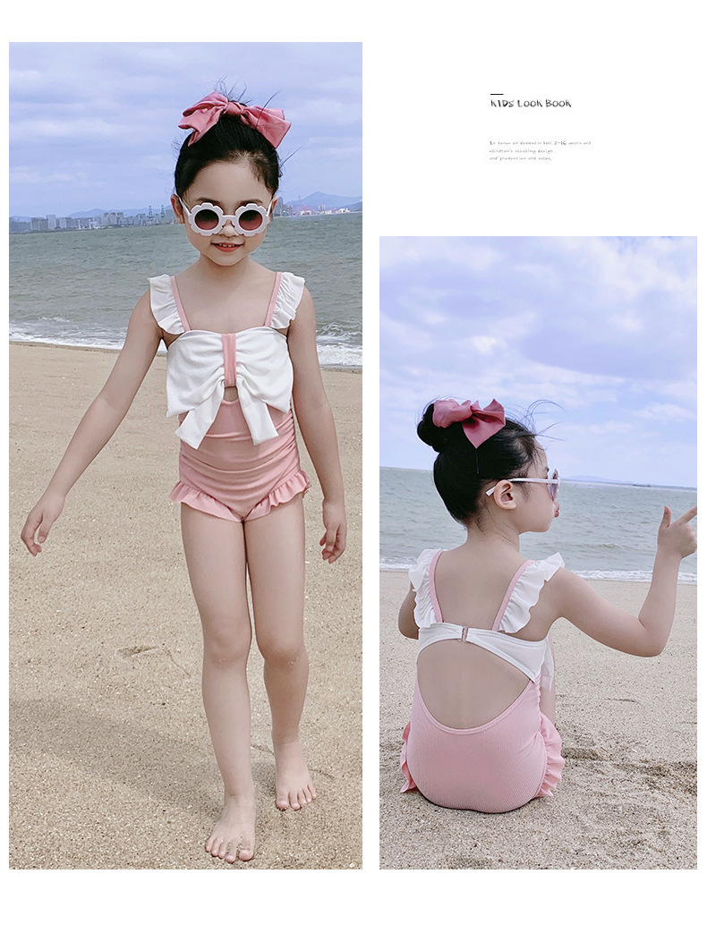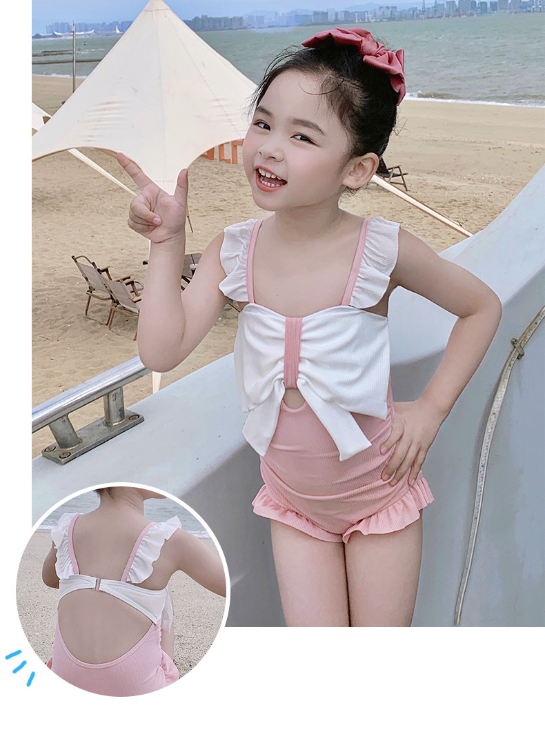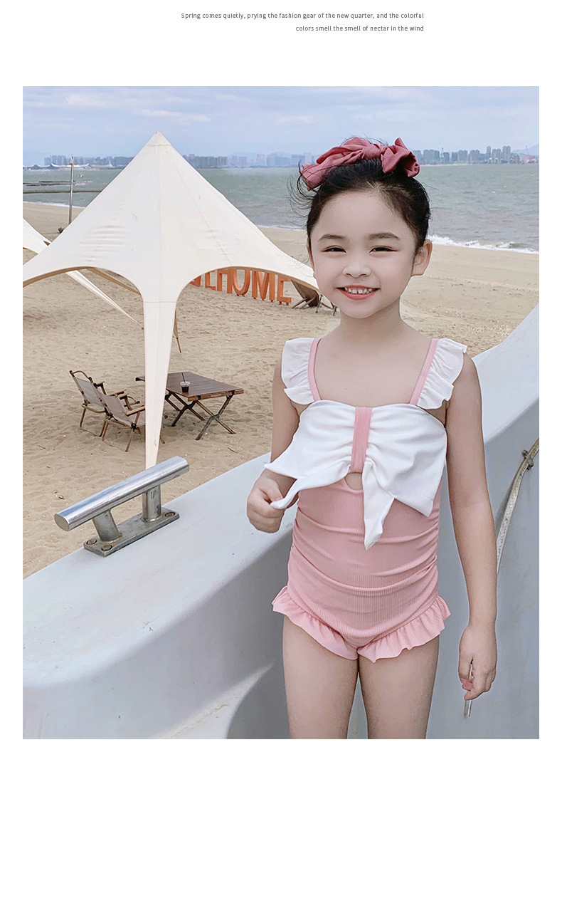 Traje de baño para niñas de una pieza estilo coreano lindo arco traje de baño para niños pequeño traje de baño de vacaciones de primavera caliente fresca al por mayor