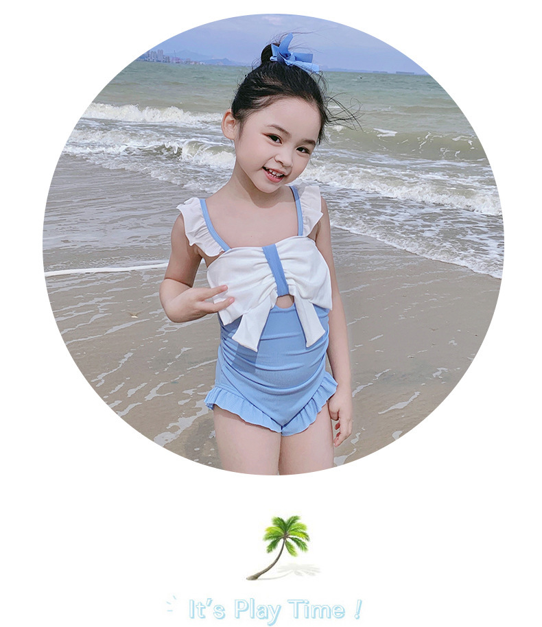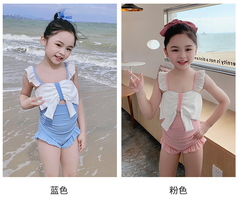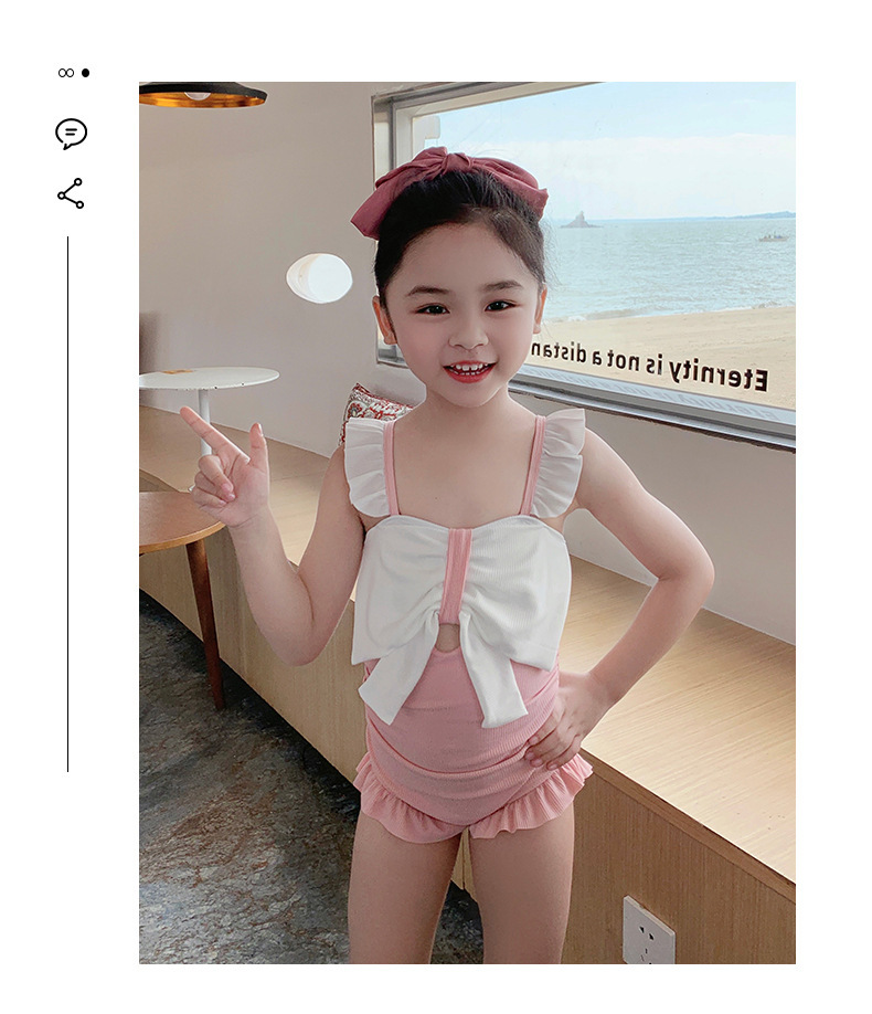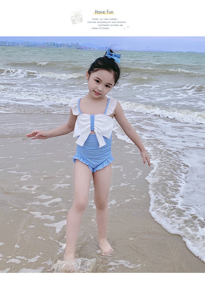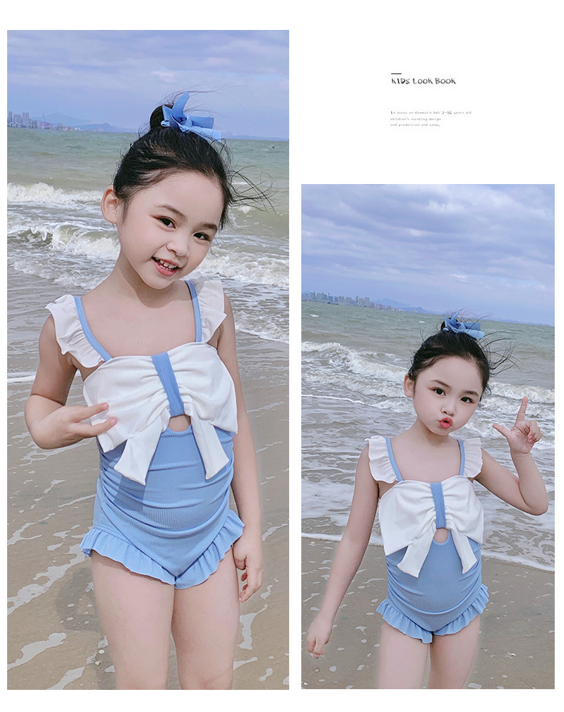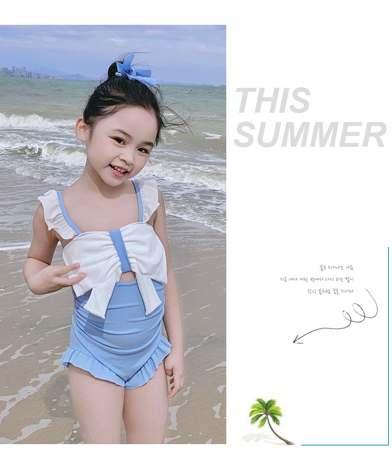 Traje de baño para niñas de una pieza estilo coreano lindo arco traje de baño para niños pequeño traje de baño de vacaciones de primavera caliente fresca al por mayor