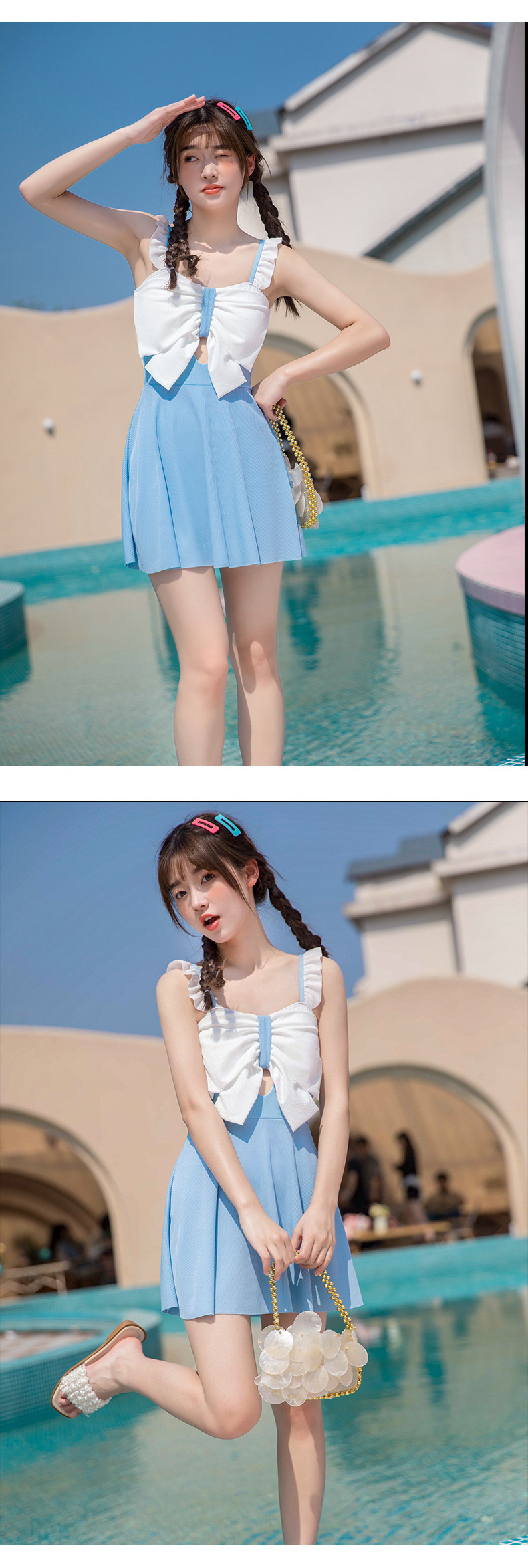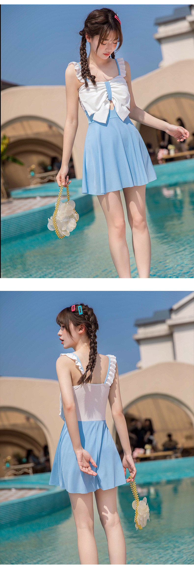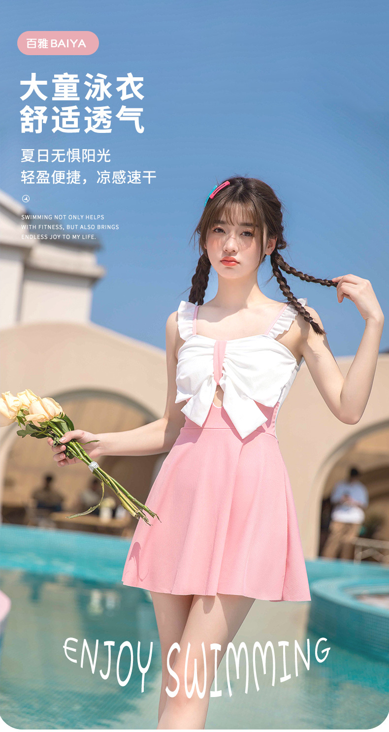 Traje de baño para niños niñas nuevo dulce fresco medio y grande vestido de una pieza para niños traje de baño protección solar traje de baño de aguas termales para niñas