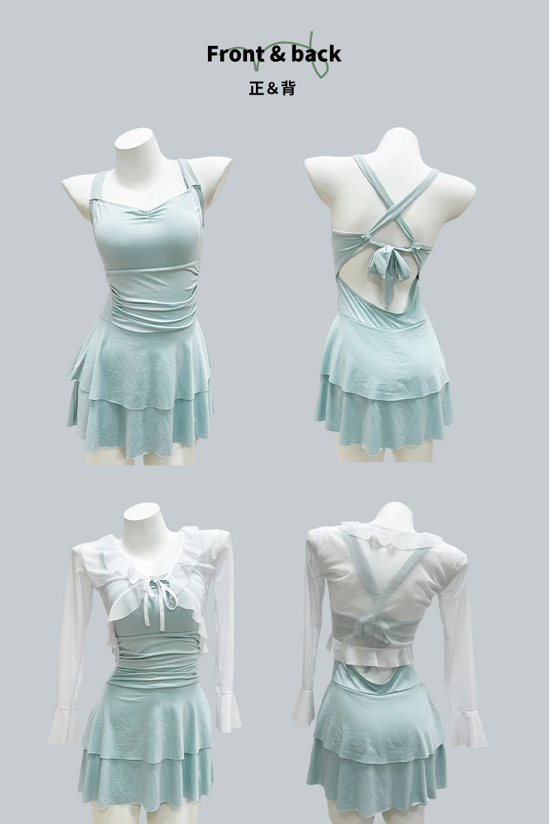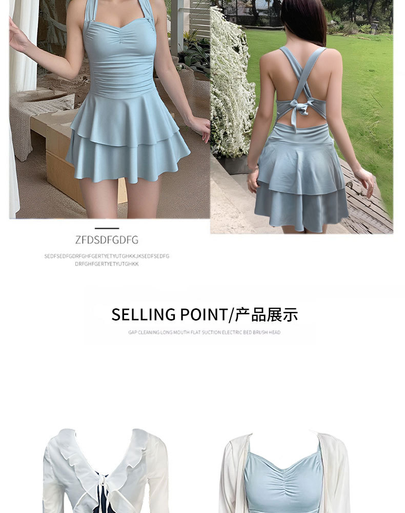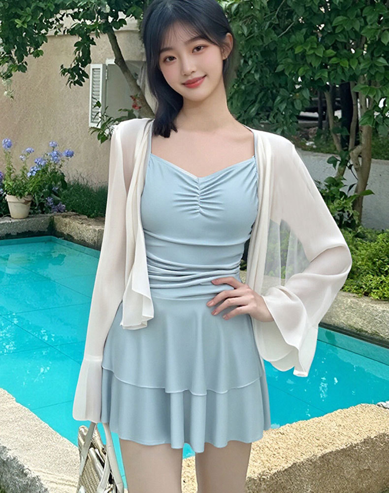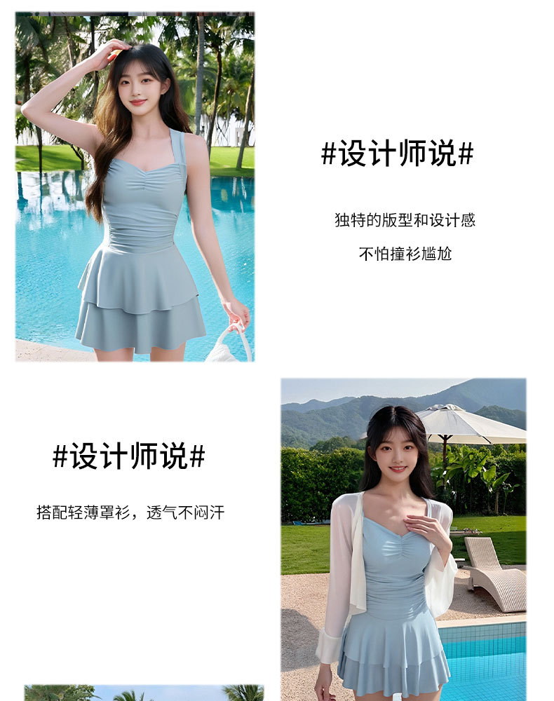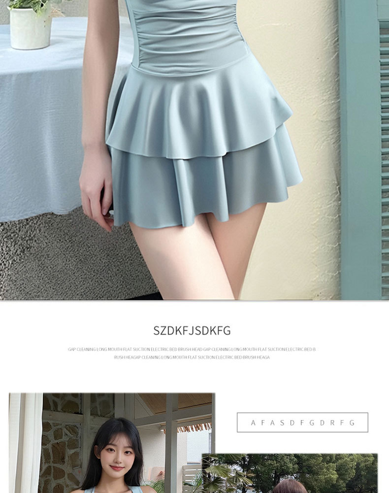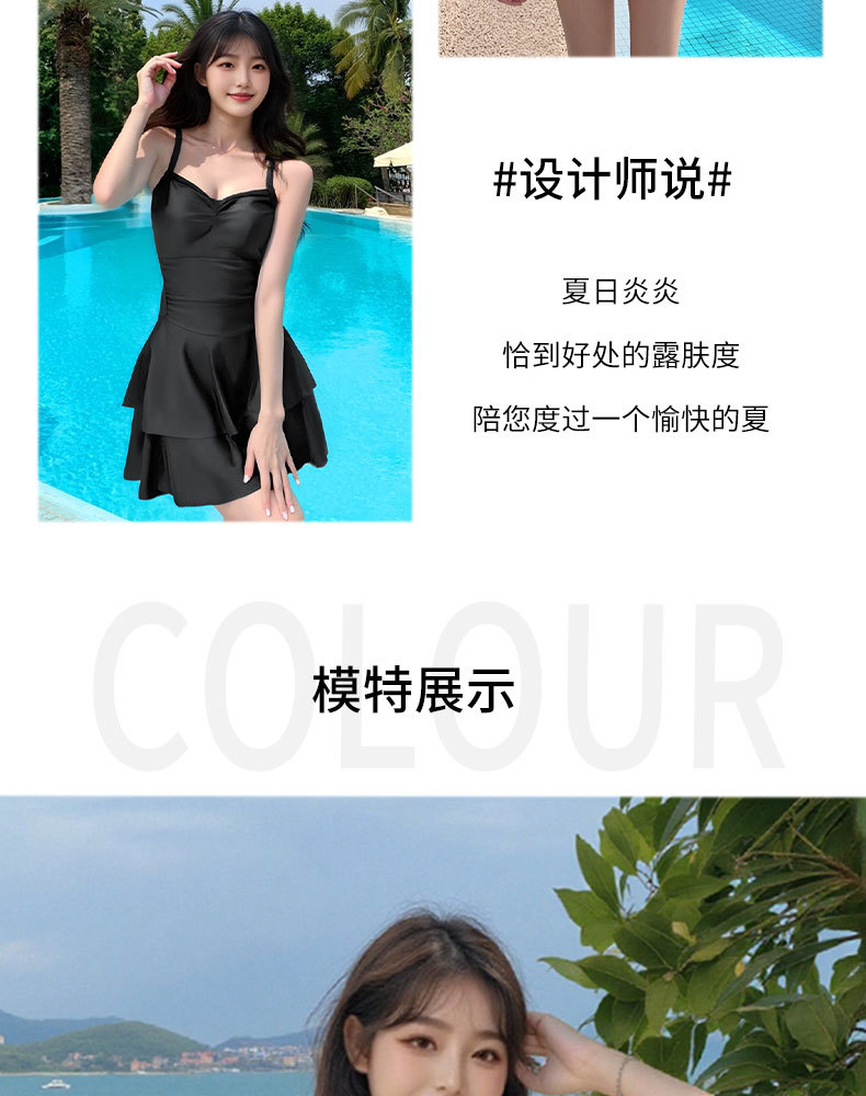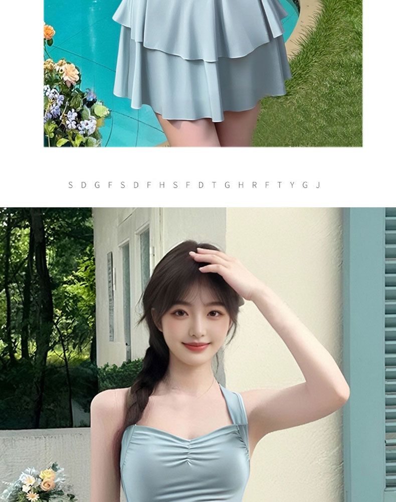 Nuevo traje de baño femenino de una pieza de color sólido cabestrillo niña dulce que cubre la carne y se ve delgado traje de baño de vacaciones de aguas termales de playa al por mayor
