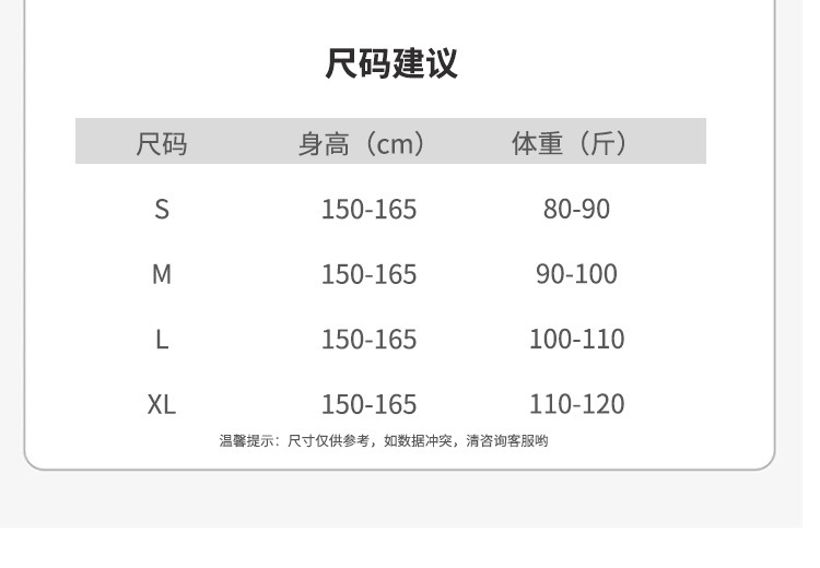 | Talla | Este es el tamaño promedio [recomendado 80 - 120 kilogramos] esta opción debe tomarse al por mayor, S [recomendado 80 - 90 kilogramos], M [recomendado 90 - 100 kilogramos], L [recomendado 100 - 110 kilogramos], XL [recomendado 110 - 120 kilogramos] |
