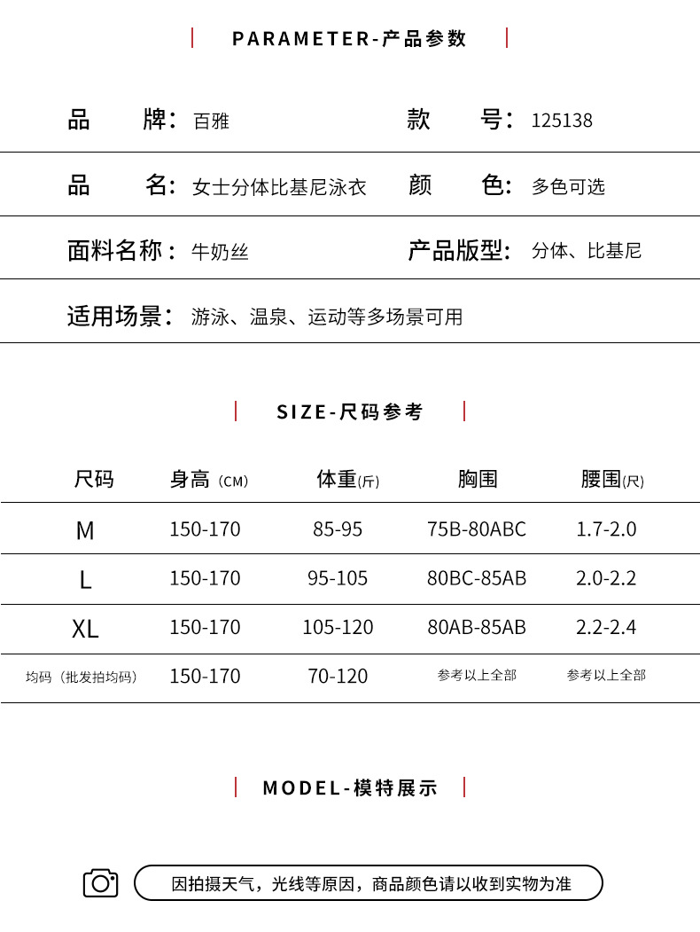 | Estilo | Calzoncillos,bikinis,calzoncillos tipo bóxer,bikini triangular,falda bikini,traje de baño dividido,traje de baño casual para surfear |