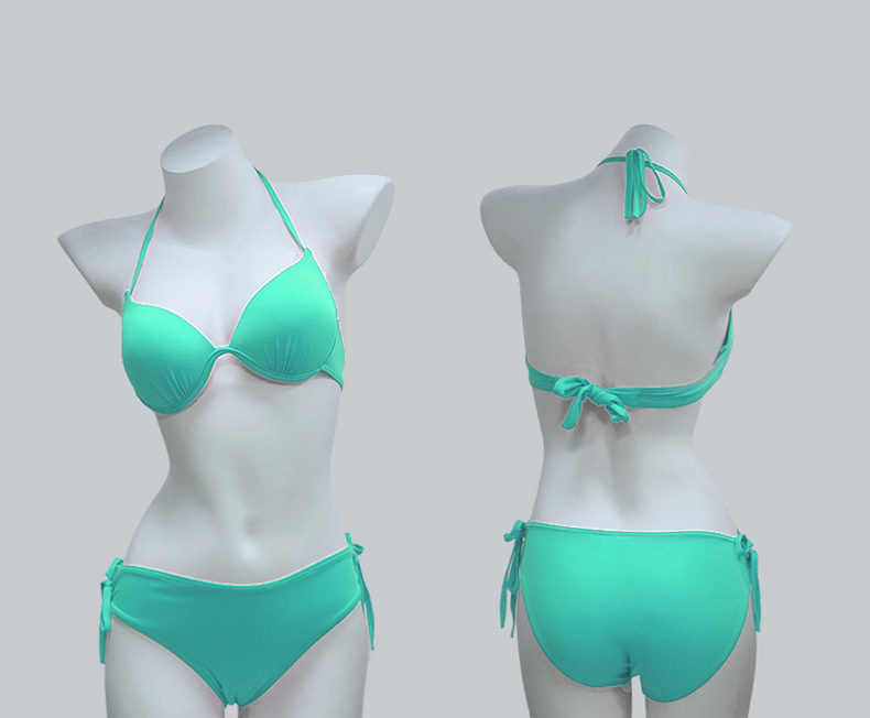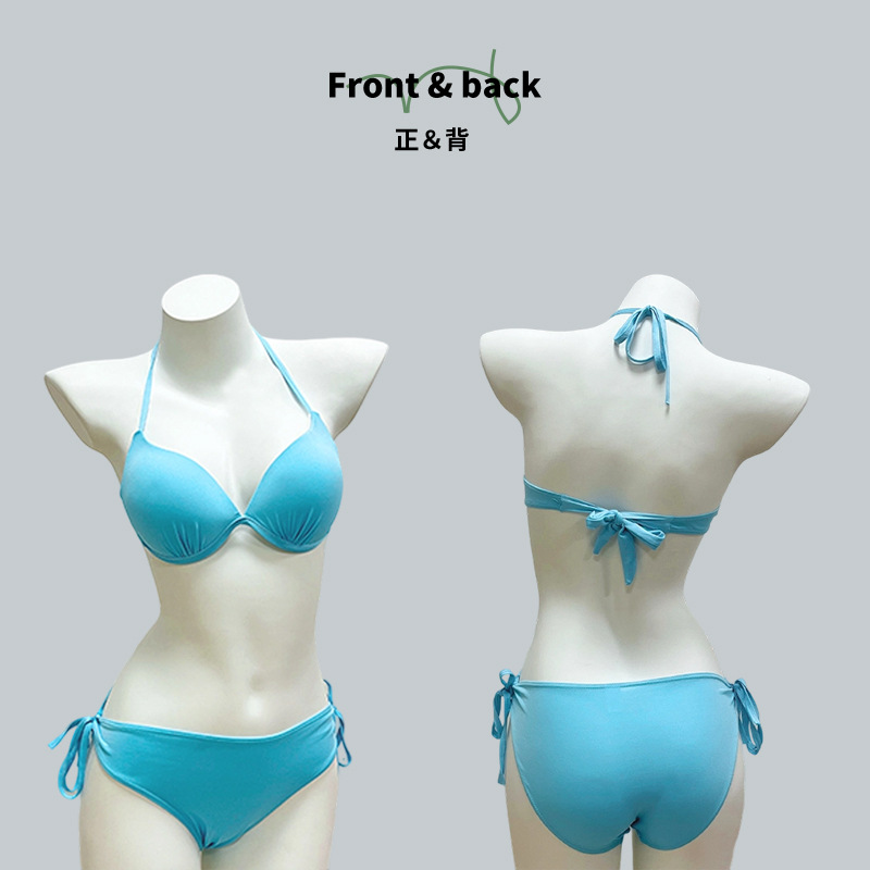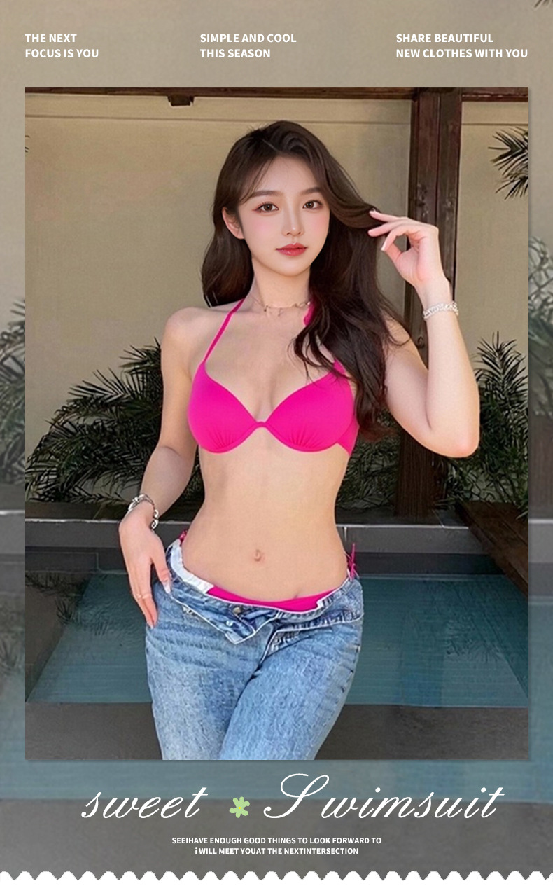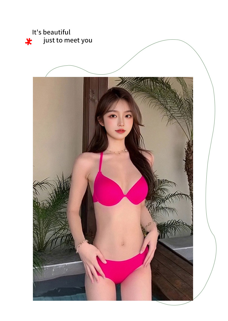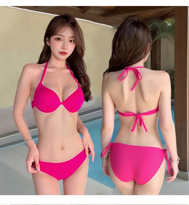 Traje de baño bikini dividido de dos piezas para mujer, color sólido con soporte de acero, pecho grande y pequeño, traje de baño de vacaciones de chicas calientes de tres puntos