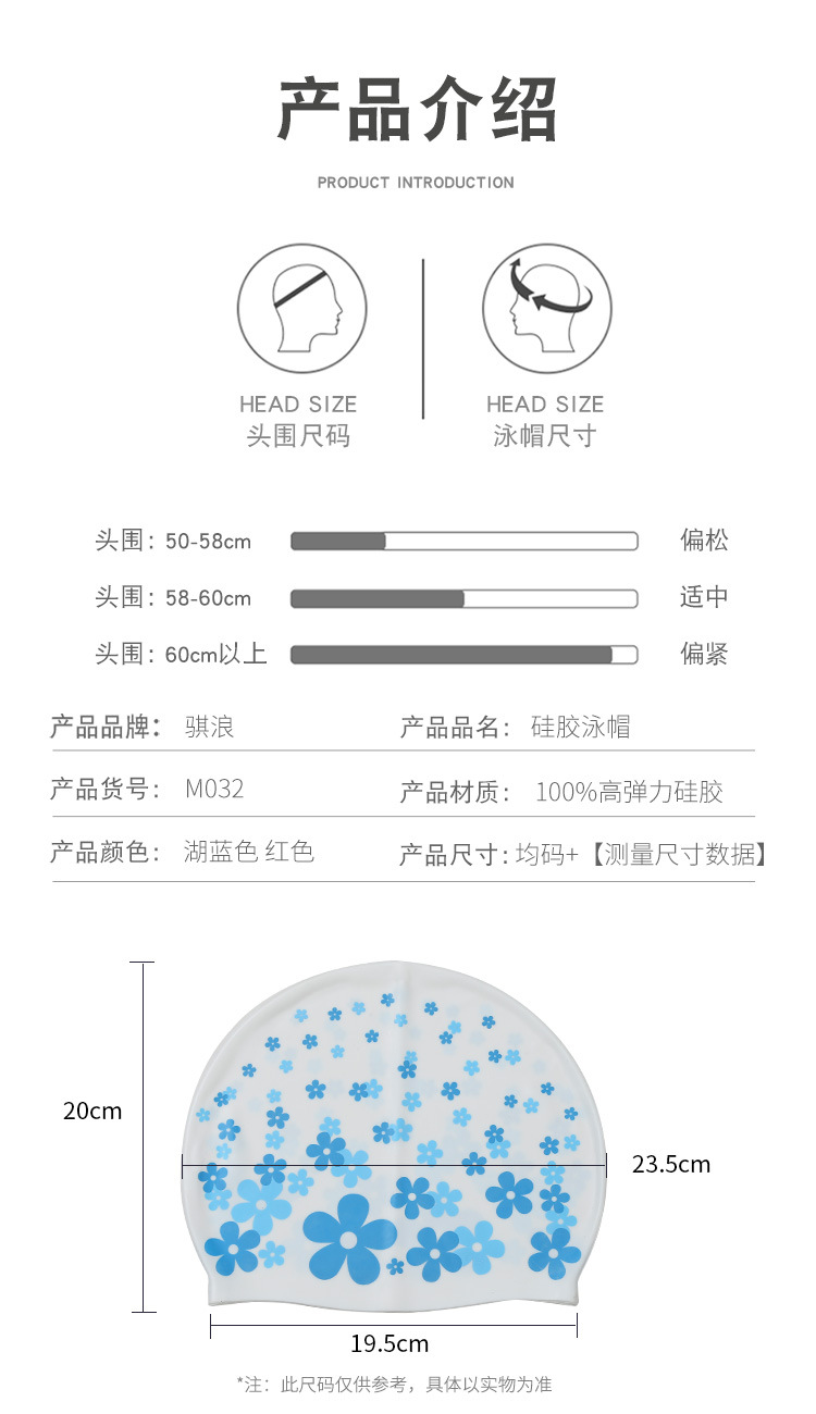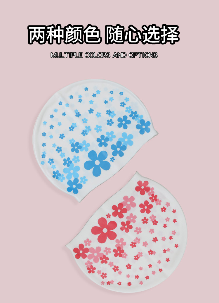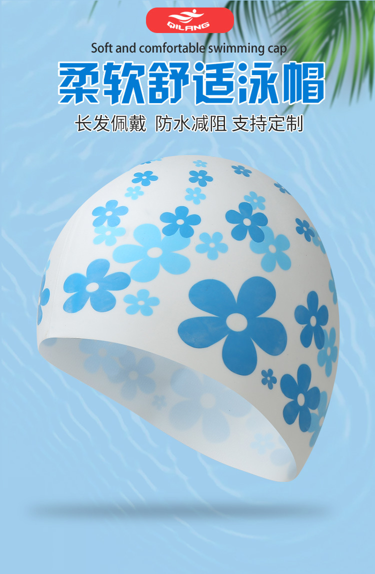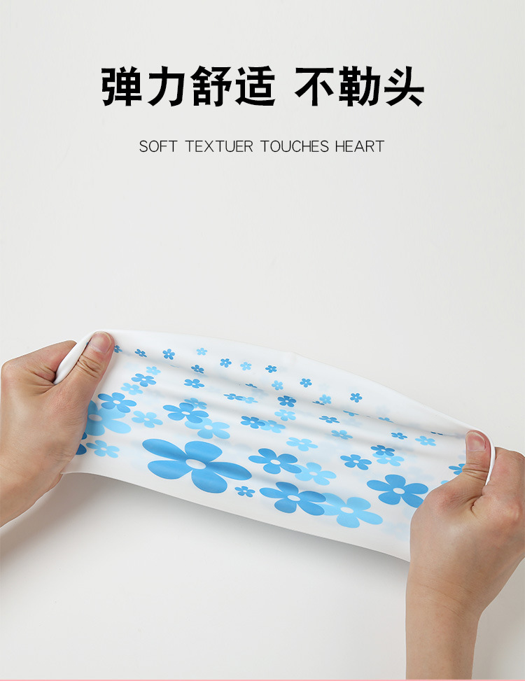 Gorro de baño estampado de silicona para hombres y mujeres adultos y niños patrón de flor universal protección auditiva impermeable gorro de baño al por mayor