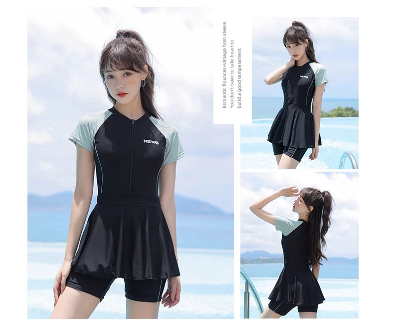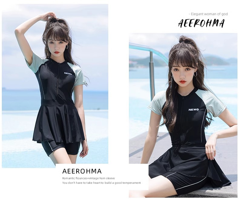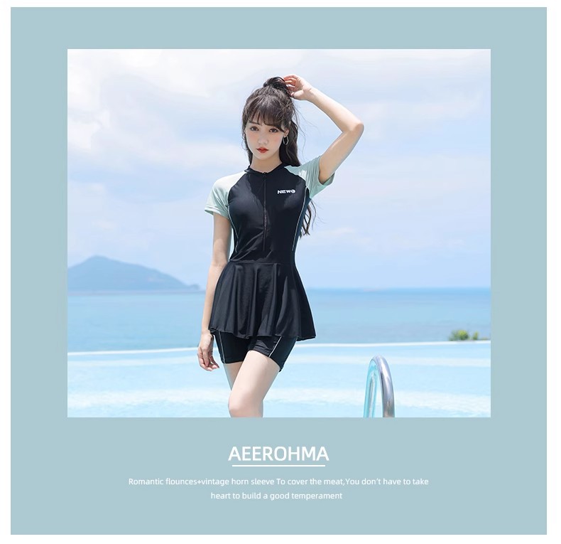 Verano nuevo trajes de baño de mujer estilo coreano color deportivo de corte de piel delgada vestido conservador trajes de baño vacacionales