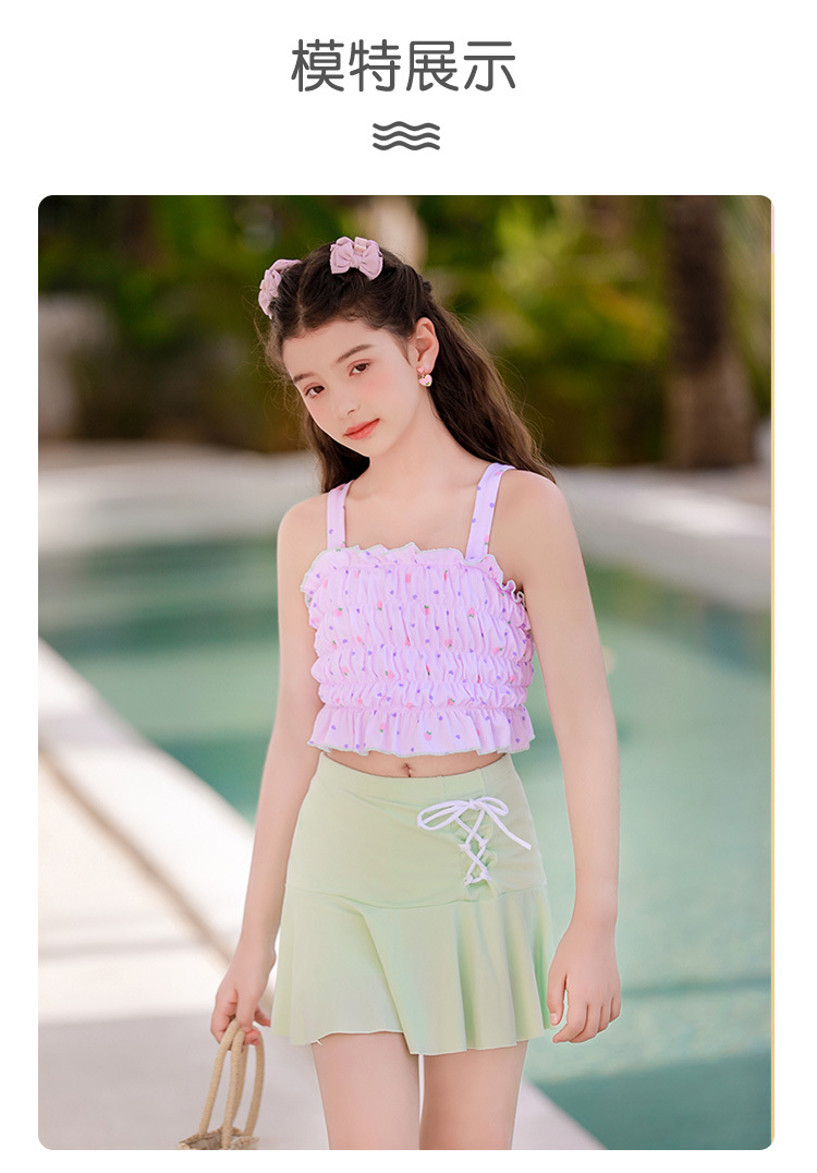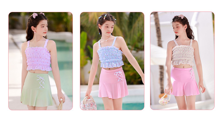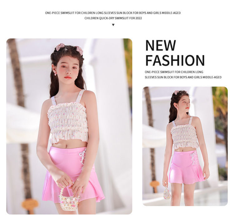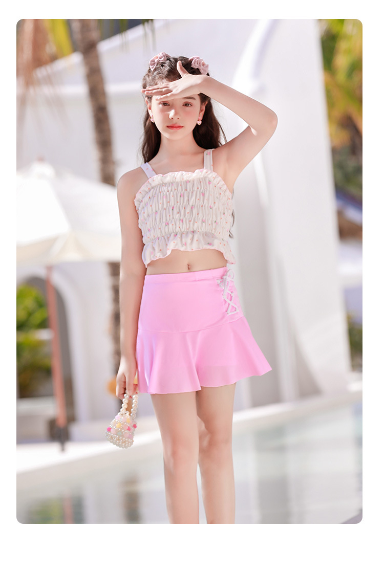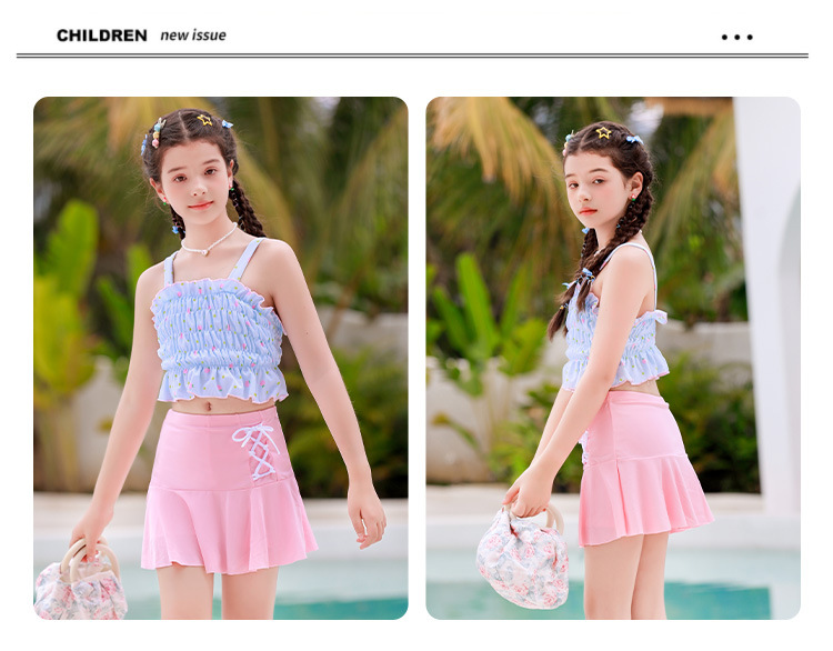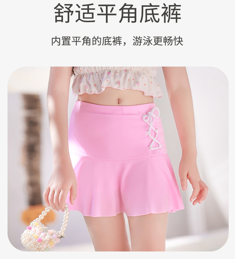 trajes de baño de niñas ins niños grandes 2025 nuevos estudiantes de estilo de cinturón split falda de niñas vacaciones trajes de baño de aguas termales de ángulo plano