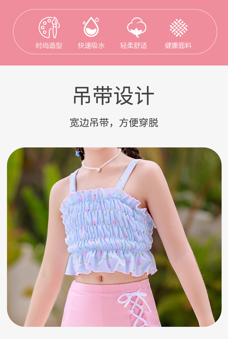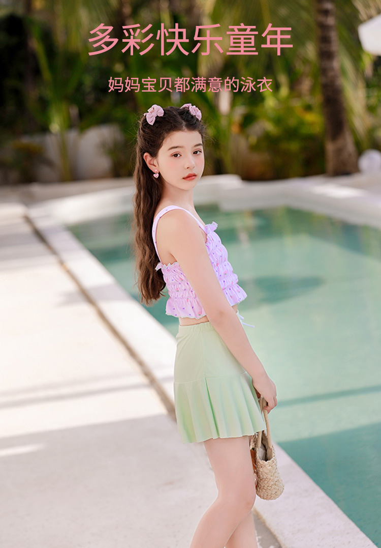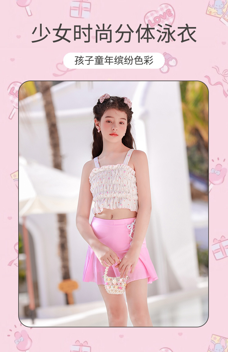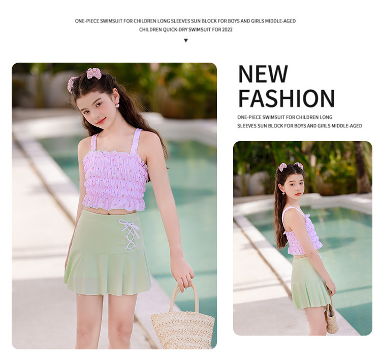 trajes de baño de niñas ins niños grandes 2025 nuevos estudiantes de estilo de cinturón split falda de niñas vacaciones trajes de baño de aguas termales de ángulo plano